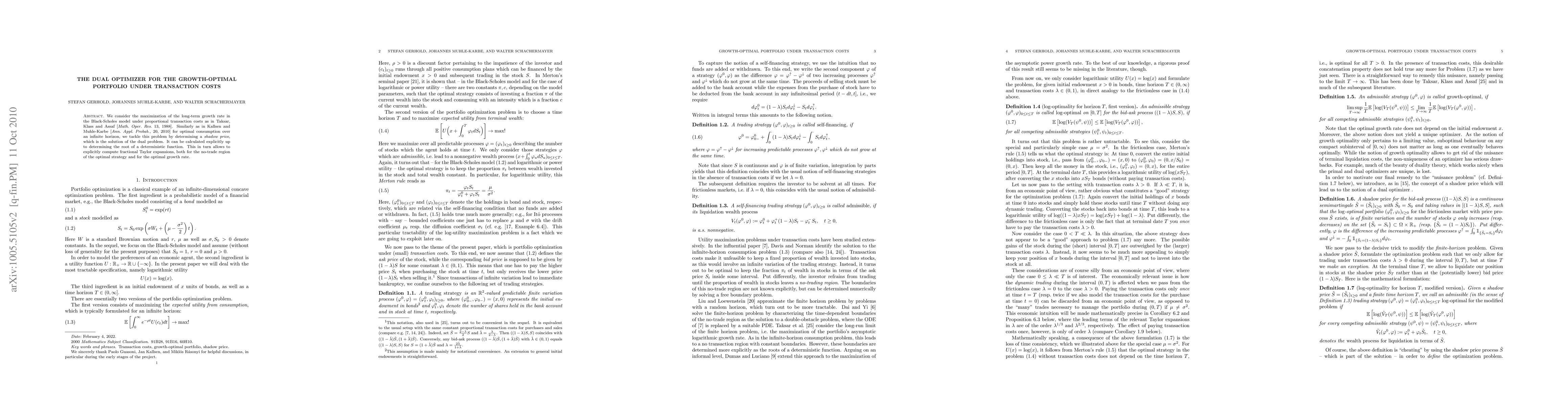 This paper develops a dual optimizer for maximizing long-term growth in the Black-Scholes model under proportional transaction costs, using a shadow price derived from a dual problem. The shadow price allows for explicit computation of the optimal strategy and growth rate, including fractional Taylor expansions.