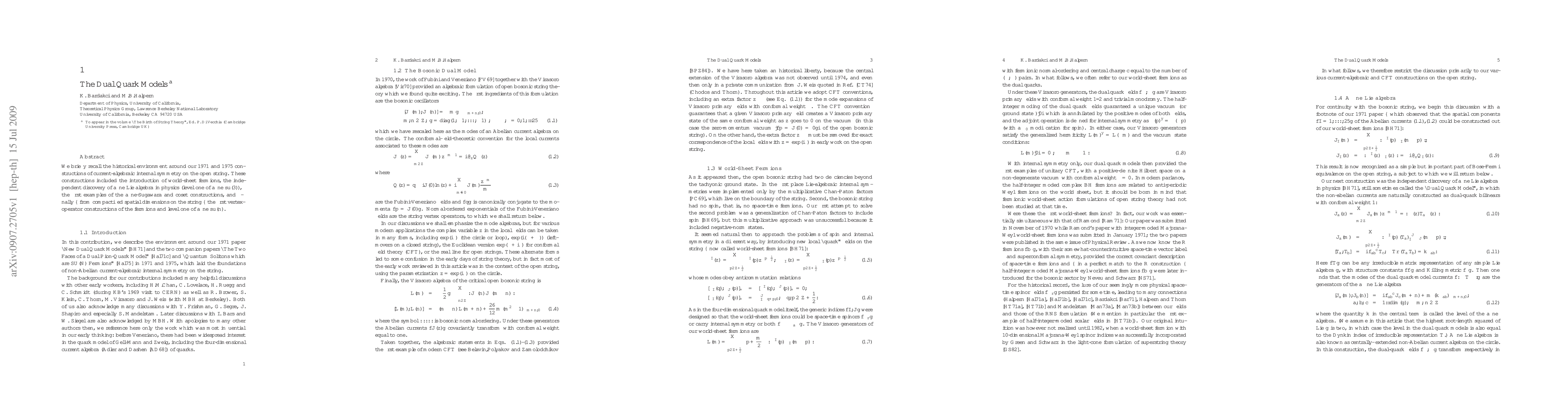 We briefly recall the historical environment around our 1971 and 1975 constructions of current-algebraic internal symmetry on the open string. These constructions included the introduction of world sheet fermions, the independent discovery of affine Lie algebra in physics (level one of affine su(3)), the first examples of the affine-Sugawara and coset constructions, and finally - from compactified spatial dimensions on the string - the first vertex-operator constructions of the fermions and level one of affine su(n).