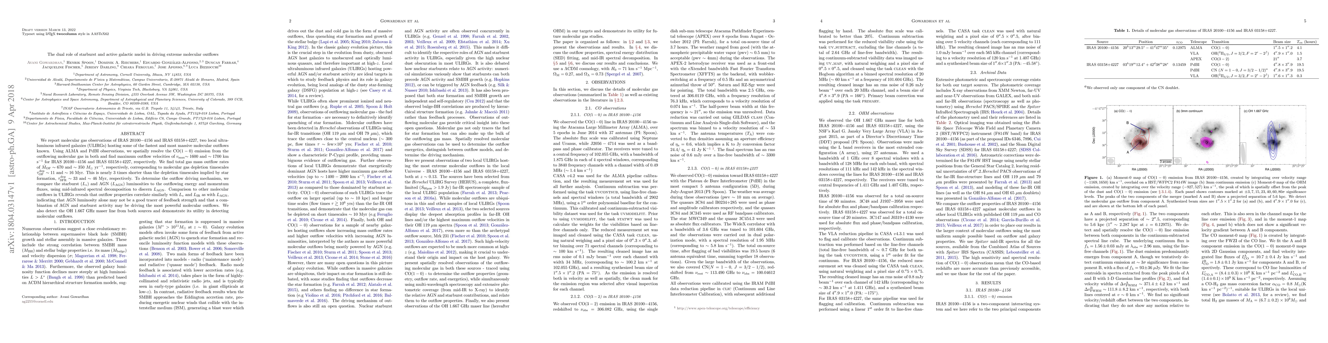 This paper investigates the molecular outflows in two ultraluminous infrared galaxies, finding that both starburst and active galactic nuclei (AGN) likely drive these extreme outflows. Observations reveal fast and massive outflows, with starburst activity potentially playing a significant role alongside AGN in driving the outflows.