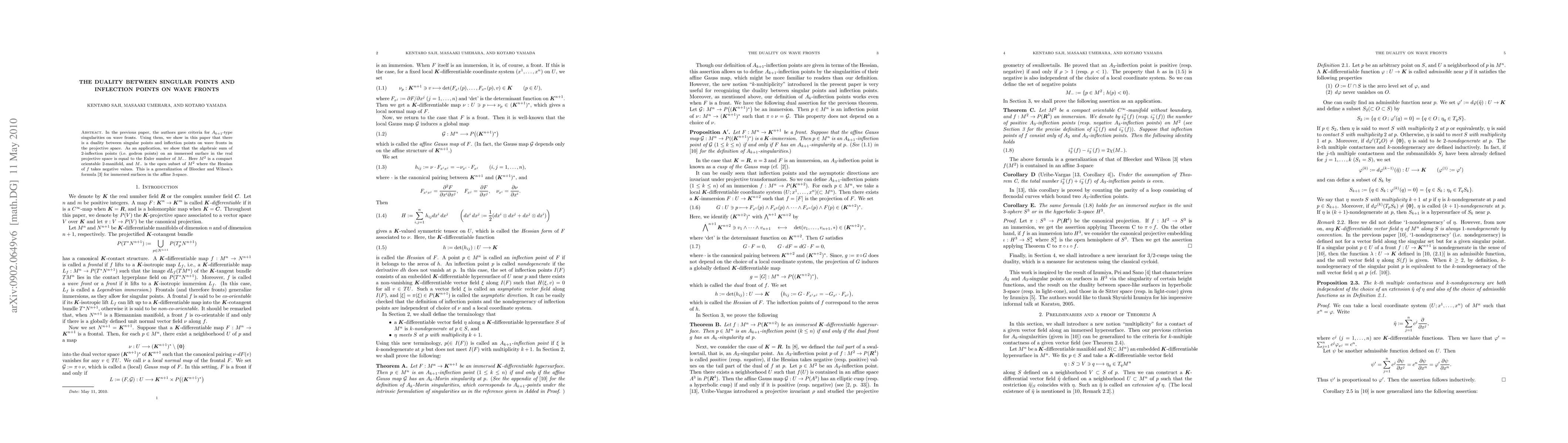 This paper establishes a duality between singular points and inflection points on wave fronts, extending previous criteria for A_{k+1}-type singularities. It demonstrates that the algebraic sum of 2-inflection points on an immersed surface in real projective space equals the Euler number of the corresponding open subset, generalizing a formula for surfaces in affine 3-space.