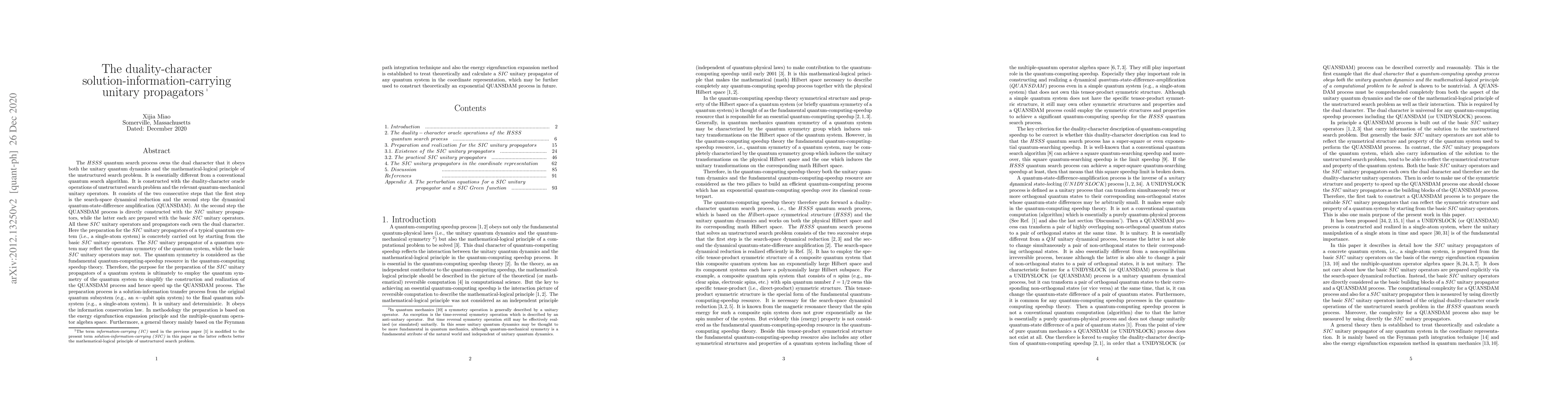 The HSSS quantum search process owns the dual character that it obeys both the unitary quantum dynamics and the mathematical-logical principle of the unstructured search problem. It is essentially different from a conventional quantum search algorithm. It is constructed with the duality-character oracle operations of unstructured search problem. It consists of the two consecutive steps: (1) the search-space dynamical reduction and (2) the dynamical quantum-state-difference amplification (QUANSDAM). The QUANSDAM process is directly constructed with the SIC unitary propagators, while the latter each are prepared with the basic SIC unitary operators. Here the preparation for the SIC unitary propagators of a single-atom system is concretely carried out by starting from the basic SIC unitary operators. The SIC unitary propagator of a quantum system may reflect the quantum symmetry of the quantum system, while the basic SIC unitary operators may not. The quantum symmetry is considered as the fundamental quantum-computing-speedup resource in the quantum-computing speedup theory. The purpose for the preparation is ultimately to employ the quantum symmetry to speed up the QUANSDAM process. The preparation is a solution-information transfer process. It is unitary and deterministic. It obeys the information conservation law. In methodology it is based on the energy eigenfunction expansion and the multiple-quantum operator algebra space. Furthermore, a general theory mainly based on the Feynman path integration technique and also the energy eigenfunction expansion method is established to treat theoretically and calculate a SIC unitary propagator of any quantum system in the coordinate representation, which may be further used to construct theoretically an exponential QUANSDAM process in future.