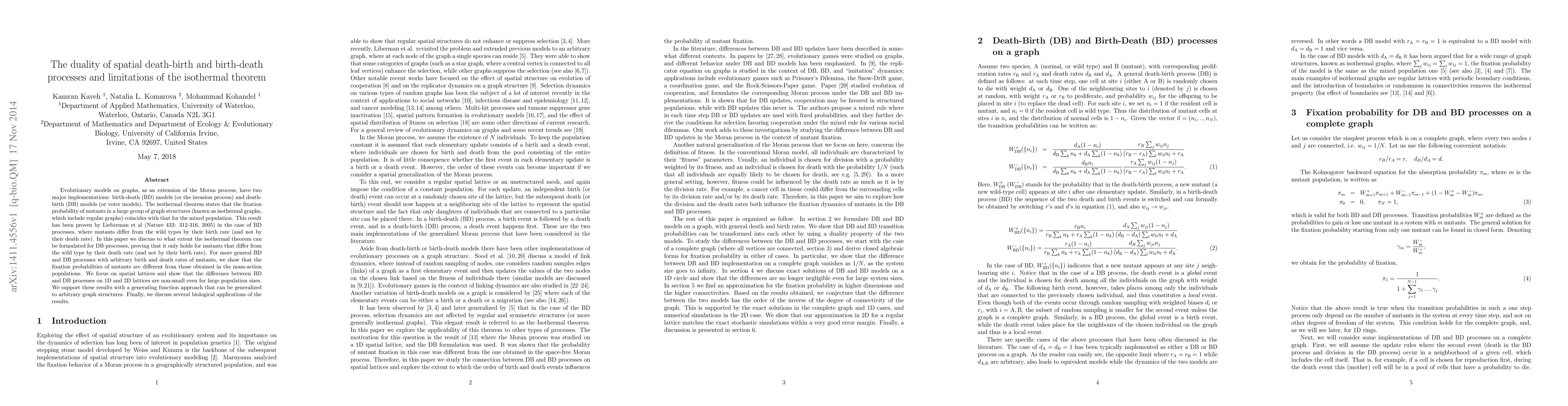 This paper explores the limitations of the isothermal theorem in evolutionary models on graphs, specifically comparing birth-death (BD) and death-birth (DB) processes. It finds that the theorem only holds for DB processes when mutants differ in death rate, not birth rate, and highlights significant differences in fixation probabilities between BD and DB processes on spatial lattices, even for large populations.