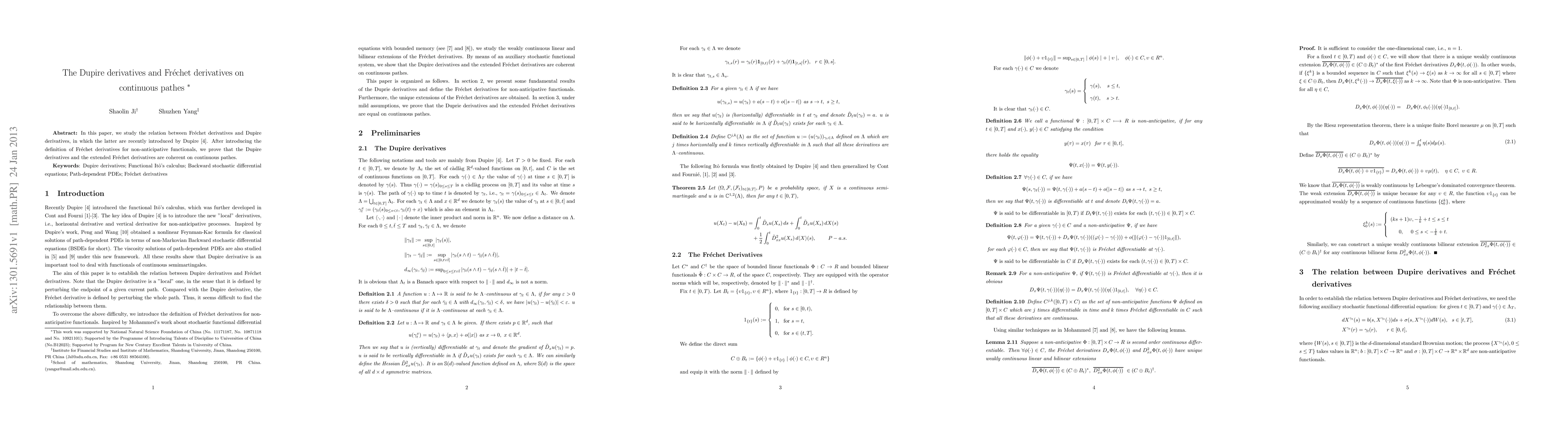 This paper investigates the relationship between Dupire derivatives and Fréchet derivatives for non-anticipative functionals, demonstrating their coherence on continuous paths and establishing the theoretical foundation for their equivalence.