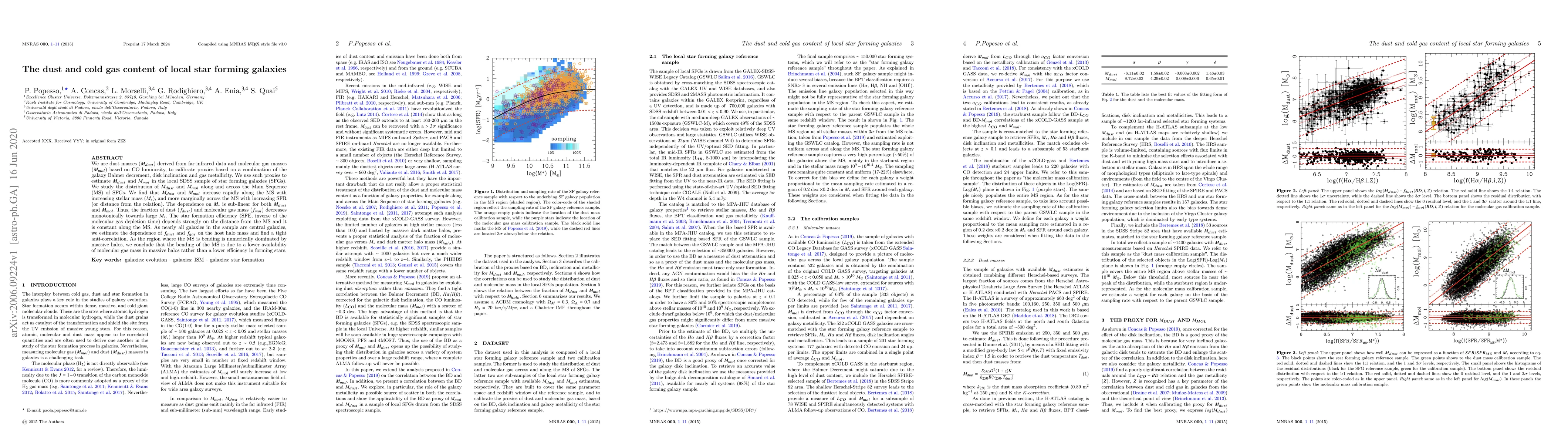 This paper investigates the dust and cold gas content in local star-forming galaxies using far-infrared and CO luminosity data. It finds that dust and molecular gas masses increase with stellar mass but decrease as galaxies move further along the Main Sequence, indicating a sub-linear dependence. The study concludes that the bending of the Main Sequence is due to reduced molecular gas availability in massive halos rather than lower star formation efficiency.