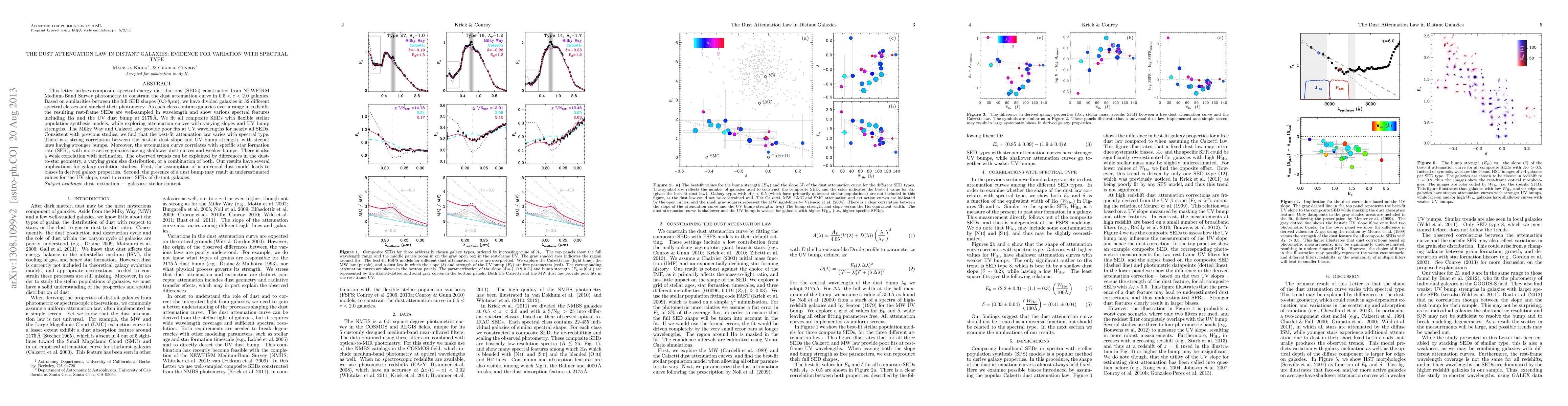 Researchers studied dust attenuation in distant galaxies, finding that the best-fit law varies with spectral type and correlates with star formation rate and UV bump strength.