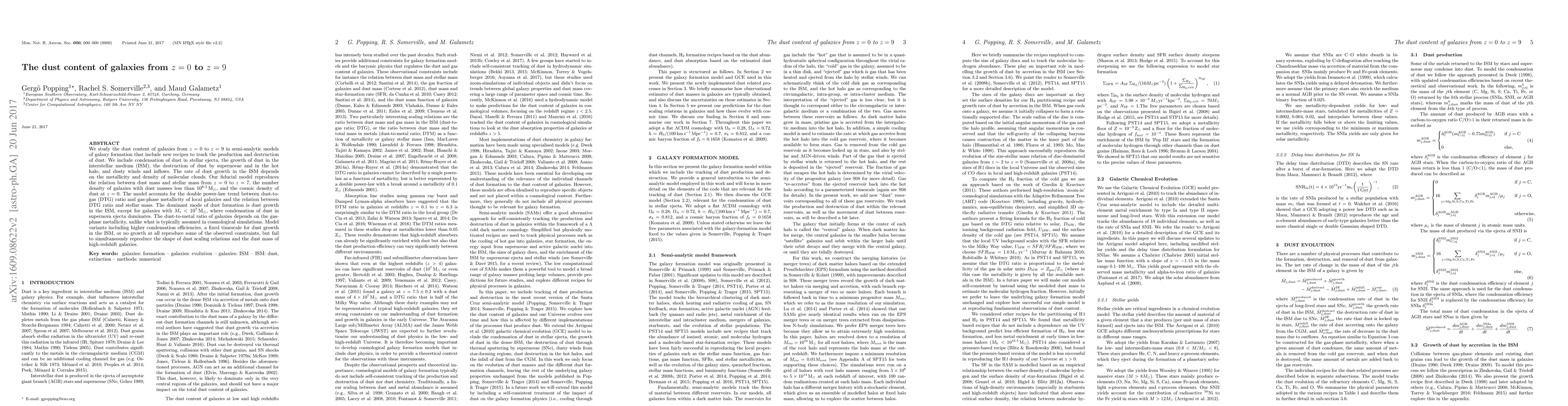 The paper introduces and validates new recipes in semi-analytic models to accurately track dust production and destruction processes across cosmic time.