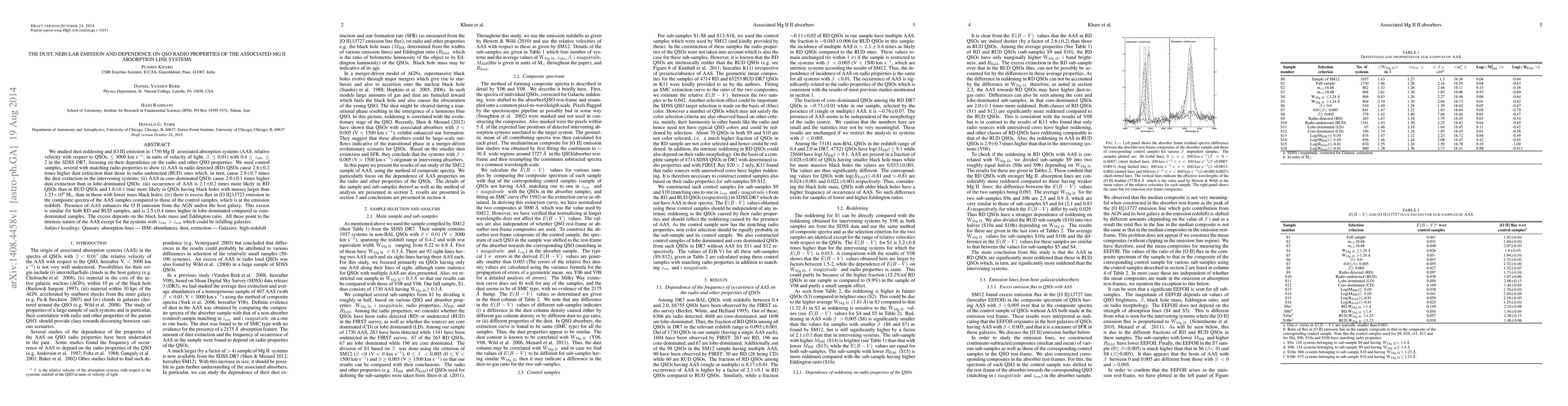 We studied dust reddening and [O II] emission in 1730 Mg II associated absorption systems (AAS; relative velocity with respect to QSOs, < 3000 km/s; in units of velocity of light, \b{eta}, < 0.01) with 0.4 < z_abs < 2 in the SDSS DR7, focusing on their dependence on the radio and other QSO properties. We used control samples, several with matching radio properties to show (i) AAS in radio detected (RD) QSOs cause 2.6 +/- 0.2 times higher dust extinction than those in radio undetected (RUD) ones which, in turn, cause 2.9 +/- 0.7 times the dust extinction in the intervening systems; (ii) AAS in core-dominated QSOs cause 2.0 +/- 0.1 times higher dust extinction than in lobe-dominated QSOs; (iii) occurrence of AAS is 2.1 +/- 0.2 times more likely in RD QSOs than in RUD QSOs and 1.8 +/- 0.1 time more likely in QSOs having black holes with masses larger than 1.23 x 10^{9} M_sun than in those with lower mass black holes; (iv) there is excess flux in [O II]{\lambda}3727 emission in the composite spectra of the AAS samples compared to those of the control samples, which is at the emission redshift. Presence of AAS enhances the O II emission from the AGN and/or the host galaxy. This excess is similar for both RD and RUD samples, and is 2.5 +/- 0.4 times higher in lobe-dominated compared to core-dominated samples. The excess depends on the black hole mass and Eddington ratio. All these point to the intrinsic nature of the AAS except for the systems with z_abs > z_em which could be infalling galaxies.