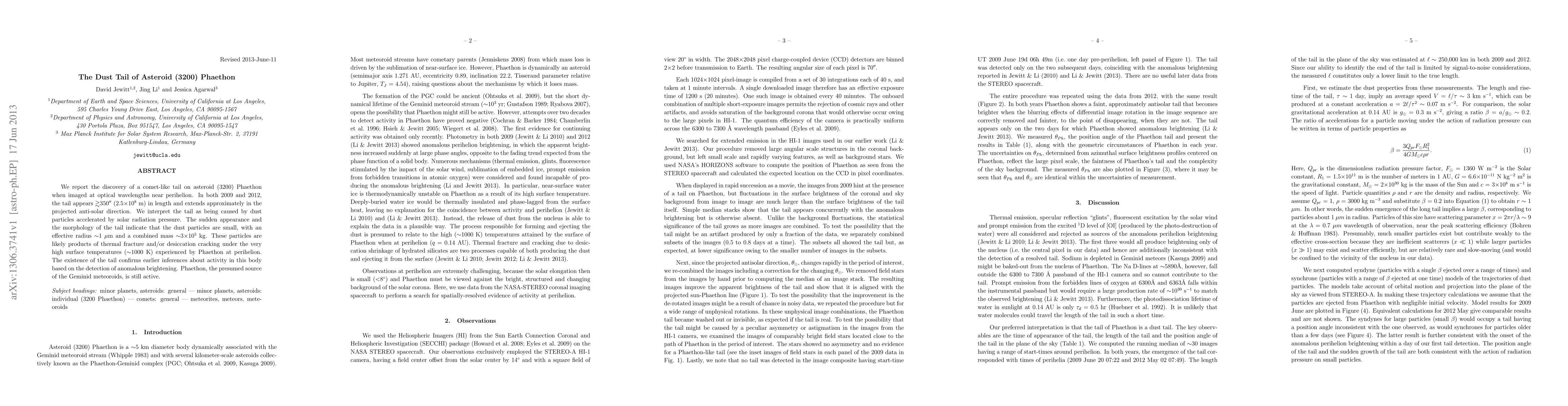 The research reveals the discovery of a comet-like dust tail on asteroid (3200) Phaethon, indicating activity and small dust particles (~1 micrometer) likely formed by thermal fracture. This tail confirms earlier activity inferences and suggests Phaethon remains active as a source of Geminid meteoroids.