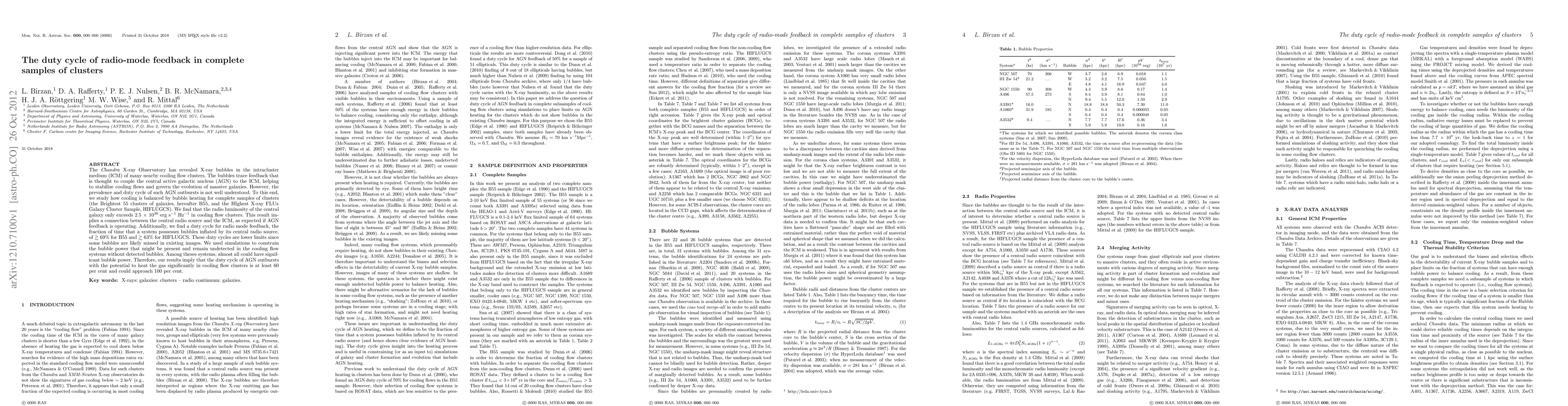 The Chandra X-ray Observatory has revealed X-ray bubbles in the intracluster medium (ICM) of many nearby cooling flow clusters. The bubbles trace feedback that is thought to couple the central active galactic nucleus (AGN) to the ICM, helping to stabilize cooling flows and govern the evolution of massive galaxies. However, the prevalence and duty cycle of such AGN outbursts is not well understood. To this end, we study how cooling is balanced by bubble heating for complete samples of clusters (the Brightest 55 clusters of galaxies, hereafter B55, and the HIghest X-ray FLUx Galaxy Cluster Sample, HIFLUGCS). We find that the radio luminosity of the central galaxy only exceeds 2.5 x 10^30 erg s^-1 Hz^-1 in cooling flow clusters. This result implies a connection between the central radio source and the ICM, as expected if AGN feedback is operating. Additionally, we find a duty cycle for radio mode feedback, the fraction of time that a system possesses bubbles inflated by its central radio source, of > 69 per cent for B55 and > 63 per cent for HIFLUGCS. These duty cycles are lower limits since some bubbles are likely missed in existing images. We used simulations to constrain the bubble power that might be present and remain undetected in the cooling flow systems without detected bubbles. Among theses systems, almost all could have significant bubble power. Therefore, our results imply that the duty cycle of AGN outbursts with the potential to heat the gas significantly in cooling flow clusters is at least 60 per cent and could approach 100 per cent.
