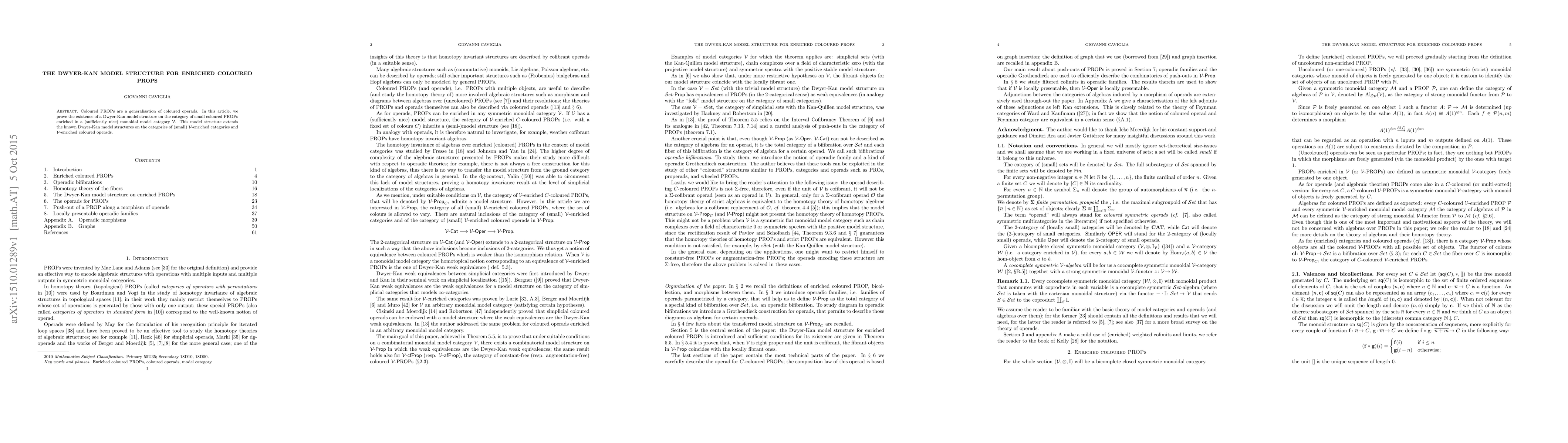 This paper establishes a Dwyer-Kan model structure on small coloured PROPs enriched in a monoidal model category V, extending existing structures for V-enriched categories and V-enriched coloured operads. The work generalizes and extends prior Dwyer-Kan model structures.