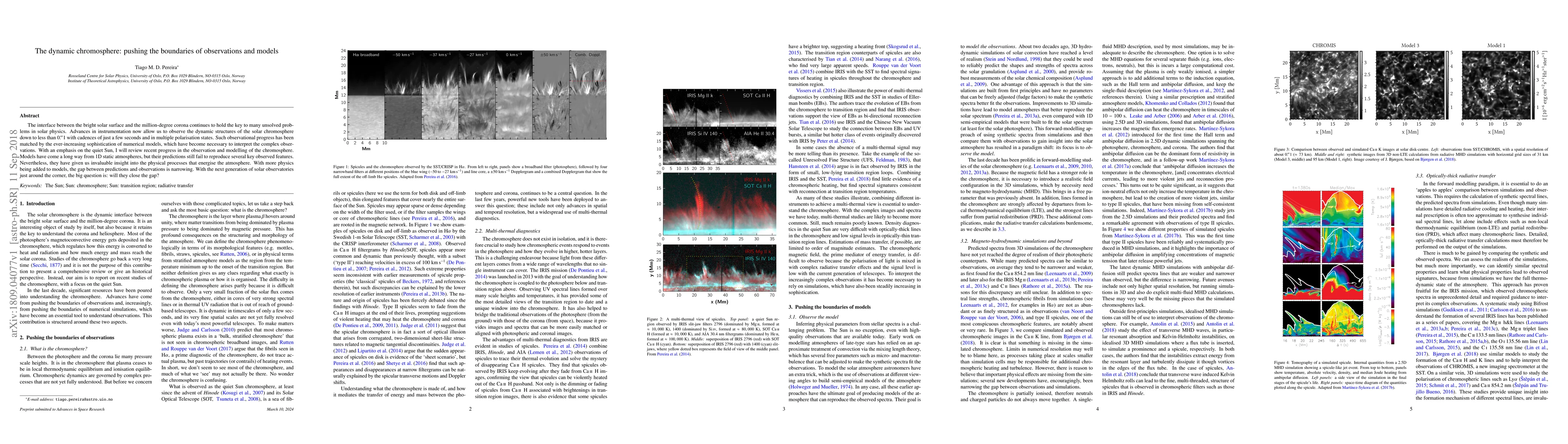 The interface between the bright solar surface and the million-degree corona continues to hold the key to many unsolved problems in solar physics. Advances in instrumentation now allow us to observe the dynamic structures of the solar chromosphere down to less than 0.1" with cadences of just a few seconds and in multiple polarisation states. Such observational progress has been matched by the ever-increasing sophistication of numerical models, which have become necessary to interpret the complex observations. With an emphasis on the quiet Sun, I will review recent progress in the observation and modelling of the chromosphere. Models have come a long way from 1D static atmospheres, but their predictions still fail to reproduce several key observed features. Nevertheless, they have given us invaluable insight into the physical processes that energise the atmosphere. With more physics being added to models, the gap between predictions and observations is narrowing. With the next generation of solar observatories just around the corner, the big question is: will they close the gap?