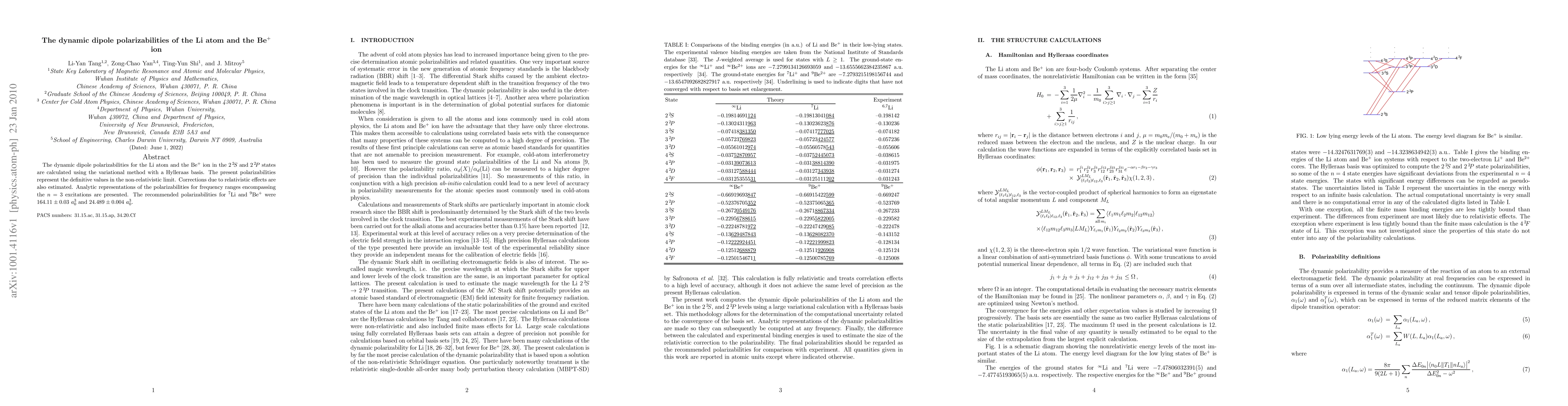 This paper calculates the dynamic dipole polarizabilities for Li atom and Be+ ion using the variational method with a Hylleraas basis, providing definitive non-relativistic values and estimating relativistic corrections. The recommended polarizabilities are reported as 164.11 ± 0.03 a.u. for ^7Li and 24.489 ± 0.004 a.u. for ^9Be+.