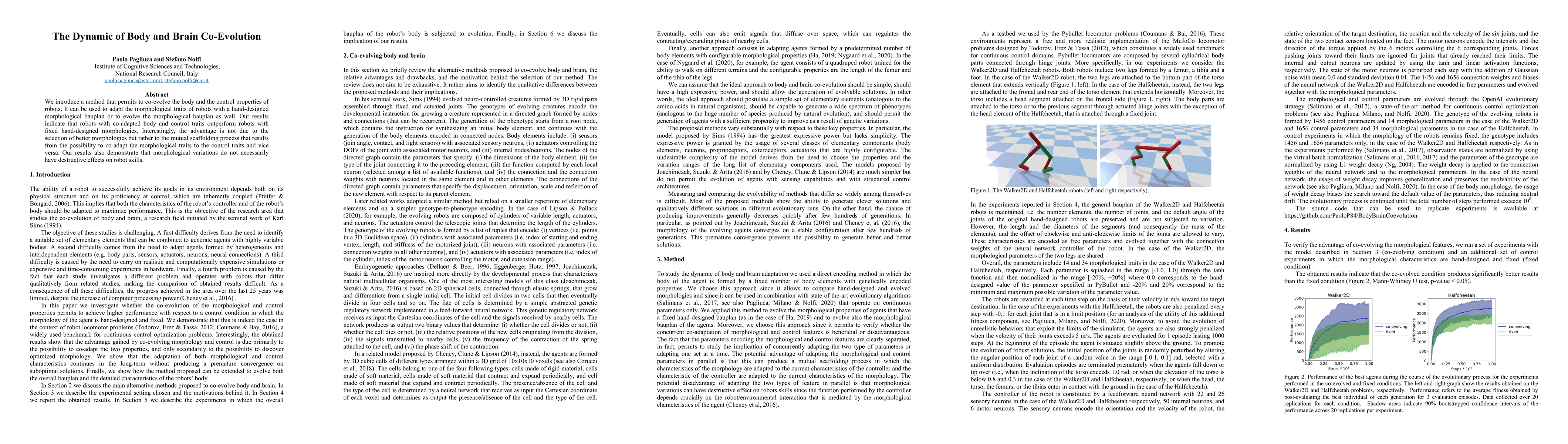 We introduce a method that permits to co-evolve the body and the control properties of robots. It can be used to adapt the morphological traits of robots with a hand-designed morphological bauplan or to evolve the morphological bauplan as well. Our results indicate that robots with co-adapted body and control traits outperform robots with fixed hand-designed morphologies. Interestingly, the advantage is not due to the selection of better morphologies but rather to the mutual scaffolding process that results from the possibility to co-adapt the morphological traits to the control traits and vice versa. Our results also demonstrate that morphological variations do not necessarily have destructive effects on robot skills.