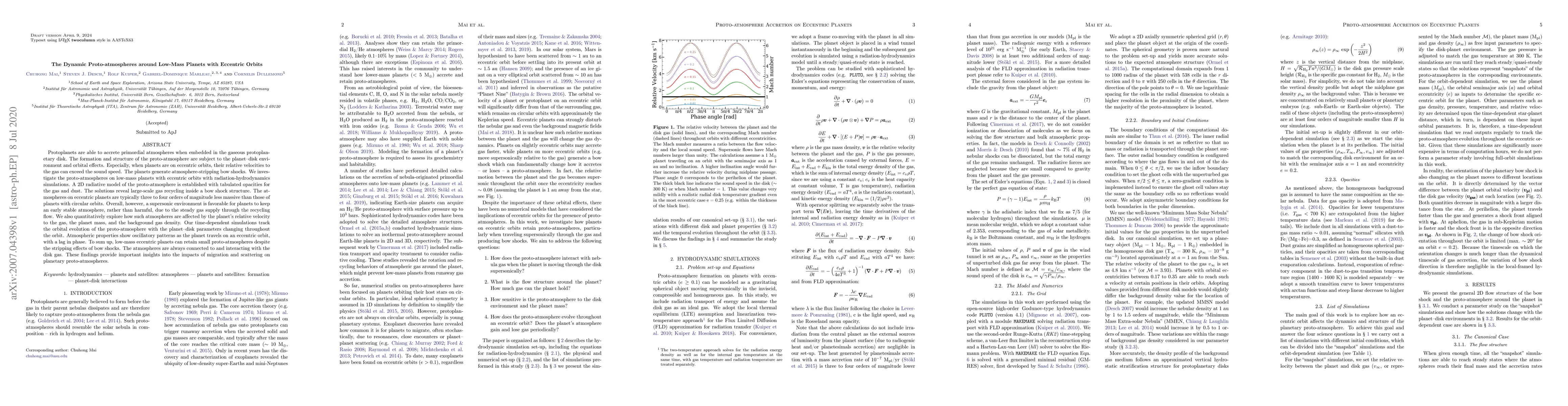 This paper investigates the formation and structure of proto-atmospheres around low-mass planets on eccentric orbits using radiation-hydrodynamics simulations. It finds that despite atmosphere-stripping bow shocks, these planets can retain small proto-atmospheres due to gas recycling, providing insights into the effects of planetary migration and scattering on proto-atmospheric evolution.