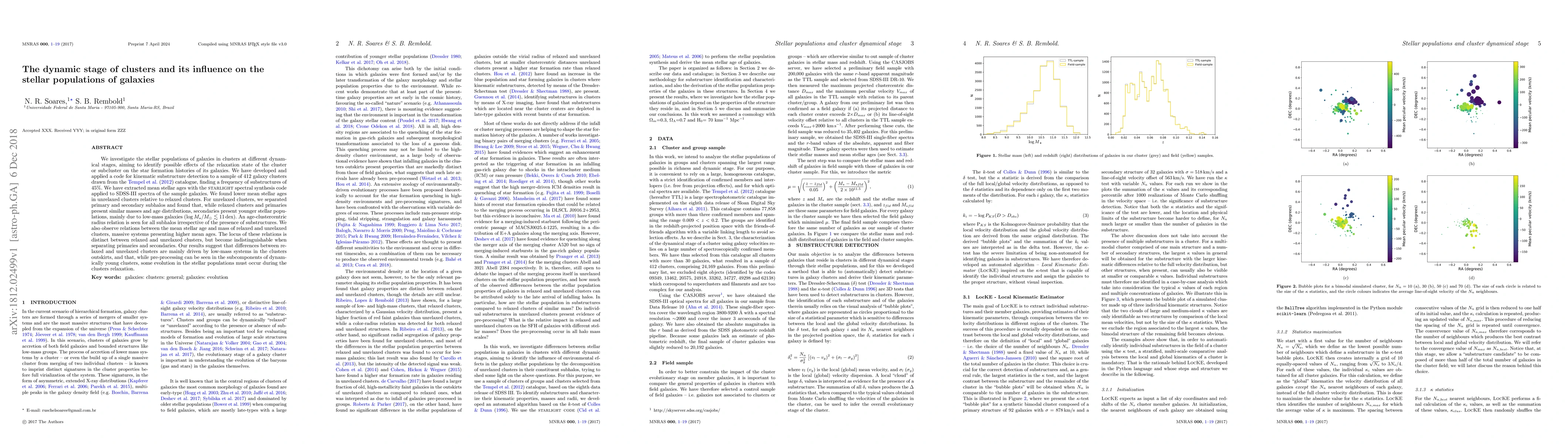 This paper examines the stellar populations of galaxies in clusters at various dynamical stages, finding that unrelaxed clusters exhibit younger stellar populations, particularly in low-mass galaxies. The study reveals an age-clustercentric radius relation and suggests that differences between relaxed and unrelaxed clusters are mainly due to low-mass systems, indicating some evolution in stellar populations during cluster relaxation.