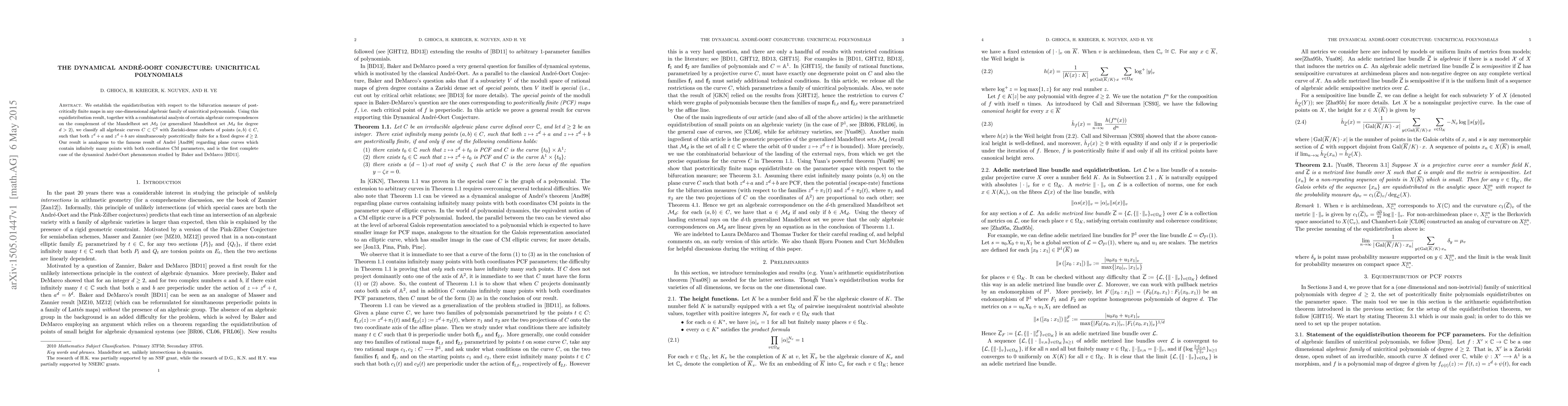 The paper introduces a method to prove equidistribution with respect to the bifurcation measure, combining dynamical systems theory with algebraic geometry.