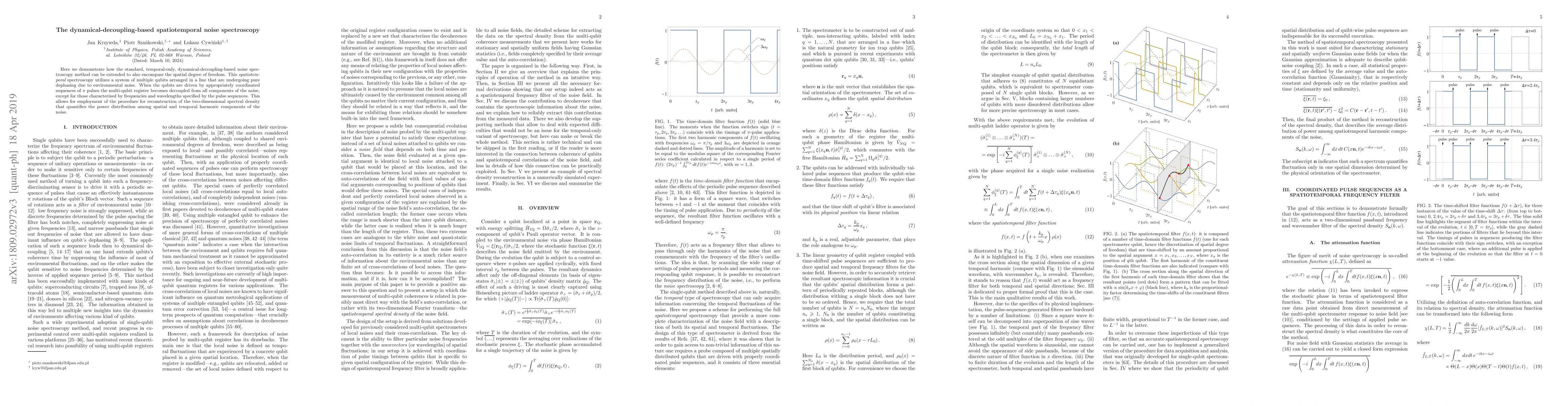 This paper extends dynamical-decoupling-based noise spectroscopy to include spatial dimensions, utilizing multiple qubits to reconstruct a two-dimensional spectral density that quantifies both spatial and temporal noise components through coordinated $\pi$ pulse sequences.