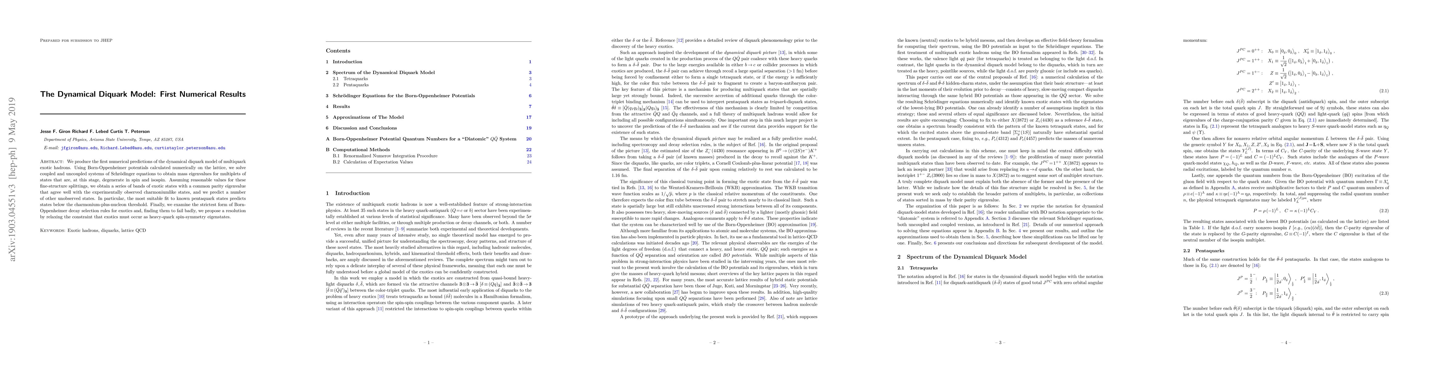 We produce the first numerical predictions of the dynamical diquark model of multiquark exotic hadrons. Using Born-Oppenheimer potentials calculated numerically on the lattice, we solve coupled and uncoupled systems of Schroedinger equations to obtain mass eigenvalues for multiplets of states that are, at this stage, degenerate in spin and isospin. Assuming reasonable values for these fine-structure splittings, we obtain a series of bands of exotic states with a common parity eigenvalue that agree well with the experimentally observed charmoniumlike states, and we predict a number of other unobserved states. In particular, the most suitable fit to known pentaquark states predicts states below the charmonium-plus-nucleon threshold. Finally, we examine the strictest form of Born-Oppenheimer decay selection rules for exotics and, finding them to fail badly, we propose a resolution by relaxing the constraint that exotics must occur as heavy-quark spin-symmetry eigenstates.