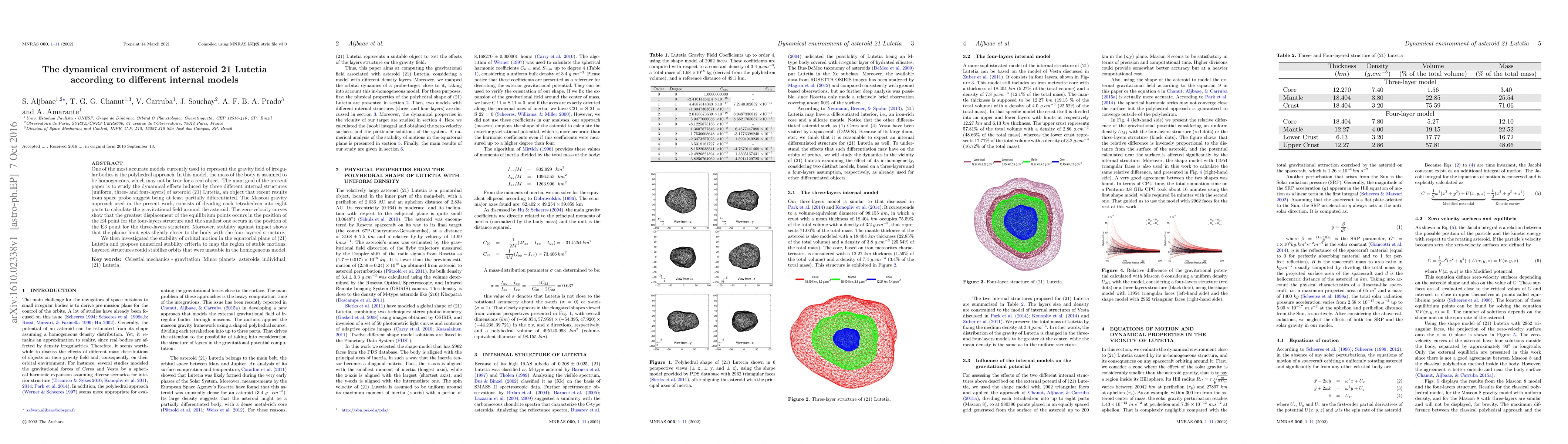 This paper examines the dynamical environment of asteroid 21 Lutetia using different internal models, revealing that layered structures can stabilize orbits that are unstable in a homogeneous model. The study finds that the four-layer structure causes the greatest displacement of the equilibrium points, while the three-layer structure has the smallest effect.