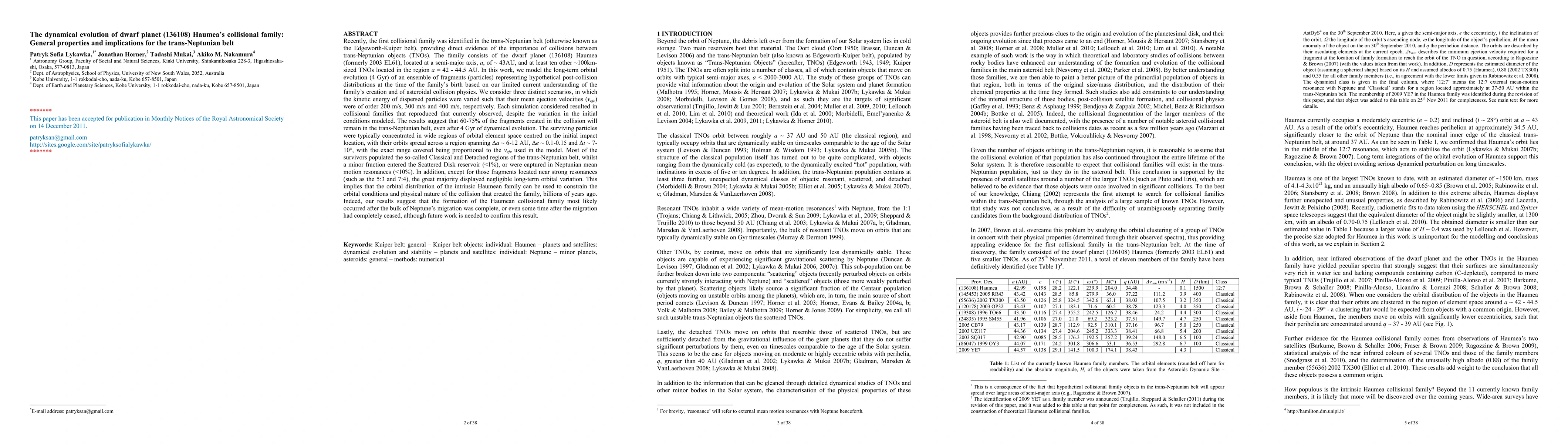 Recently, the first collisional family was identified in the trans-Neptunian belt. The family consists of Haumea and at least ten other ~100km-sized trans-Neptunian objects (TNOs) located in the region a = 42 - 44.5 AU. In this work, we model the long-term orbital evolution of an ensemble of fragments representing hypothetical post-collision distributions at the time of the family's birth. We consider three distinct scenarios, in which the kinetic energy of dispersed particles were varied such that their mean ejection velocities (veje) were of order 200 m/s, 300 m/s and 400 m/s, respectively. Each simulation considered resulted in collisional families that reproduced that currently observed. The results suggest that 60-75% of the fragments created in the collision will remain in the trans-Neptunian belt, even after 4 Gyr of dynamical evolution. The surviving particles were typically concentrated in wide regions of orbital element space centred on the initial impact location, with their orbits spread across a region spanning {\Delta}a ~ 6-12 AU, {\Delta}e ~ 0.1-0.15 and {\Delta}i ~ 7-10{\deg}. Most of the survivors populated the so-called Classical and Detached regions of the trans-Neptunian belt, whilst a minor fraction entered the Scattered Disk reservoir (<1%), or were captured in Neptunian mean motion resonances (<10%). In addition, except for those fragments located near strong resonances, the great majority displayed negligible long-term orbital variation. This implies that the orbital distribution of the intrinsic Haumean family can be used to constrain the orbital conditions and physical nature of the collision that created the family, billions of years ago. Indeed, our results suggest that the formation of the Haumean collisional family most likely occurred after the bulk of Neptune's migration was complete, or even some time after the migration had completely ceased.