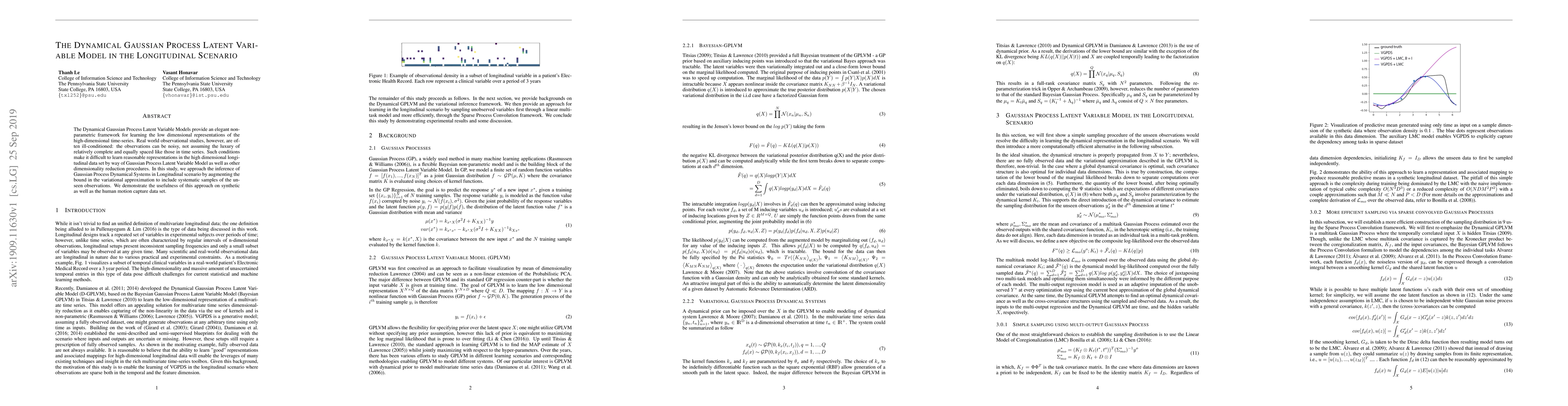 This paper proposes a Dynamical Gaussian Process Latent Variable Model for learning low-dimensional representations from noisy, unevenly spaced longitudinal data. It enhances the variational approximation by incorporating systematic samples of unseen observations, demonstrating effectiveness on synthetic and human motion capture datasets.