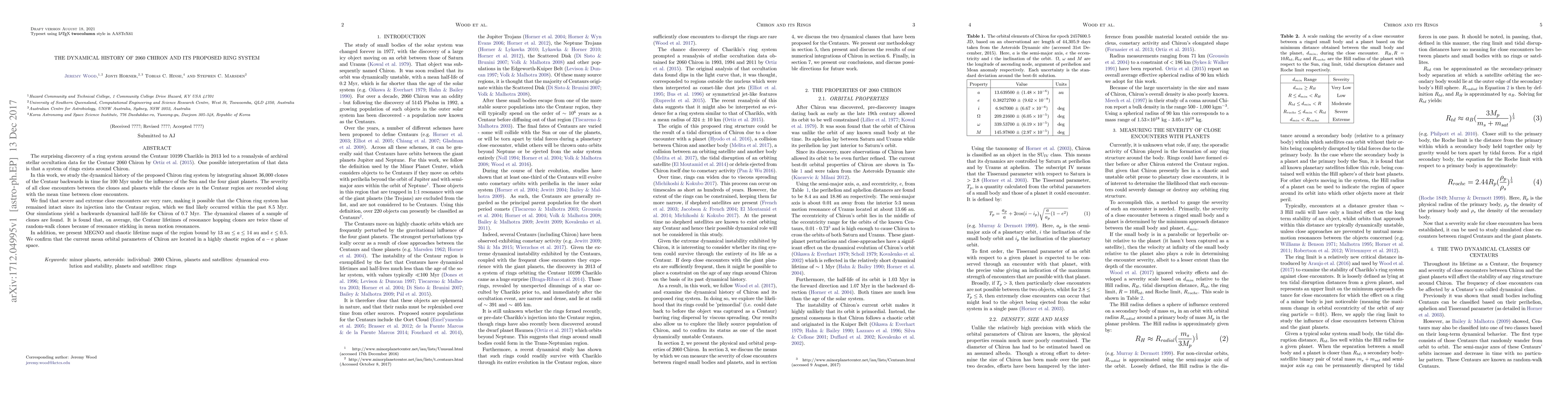 This study investigates the dynamical history of the proposed ring system around Chiron by simulating nearly 36,000 clones backward in time. The analysis suggests that severe close encounters are rare, indicating the Chiron ring system may have remained intact since its formation, likely within the past 8.5 Myr.
