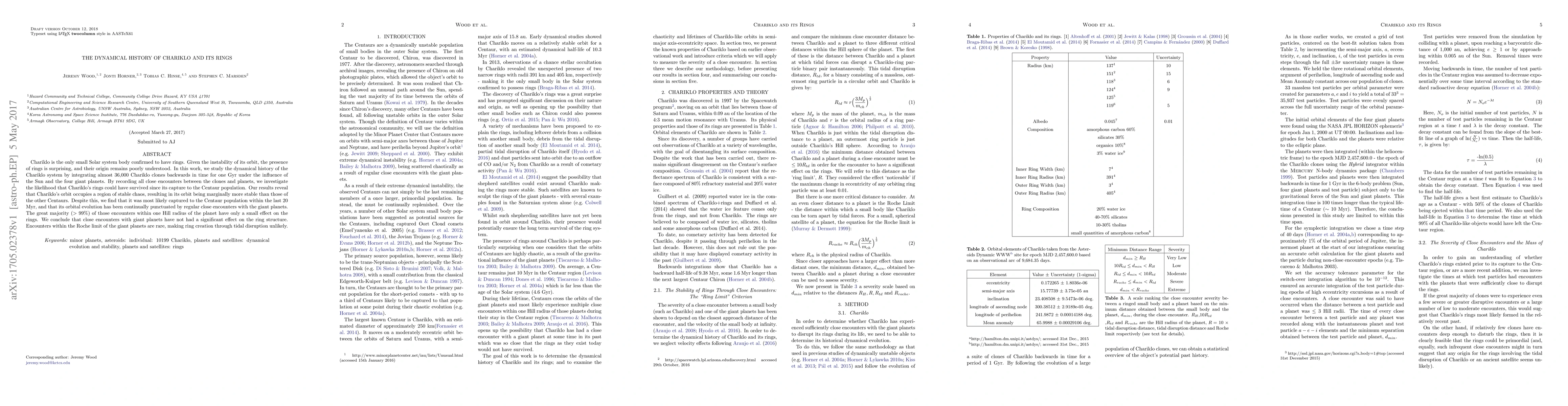 Chariklo is the only small Solar system body confirmed to have rings. Given the instability of its orbit, the presence of rings is surprising, and their origin remains poorly understood. In this work, we study the dynamical history of the Chariklo system by integrating almost 36,000 Chariklo clones backwards in time for one Gyr under the influence of the Sun and the four giant planets. By recording all close encounters between the clones and planets, we investigate the likelihood that Chariklo's rings could have survived since its capture to the Centaur population. Our results reveal that Chariklo's orbit occupies a region of stable chaos, resulting in its orbit being marginally more stable than those of the other Centaurs. Despite this, we find that it was most likely captured to the Centaur population within the last 20 Myr, and that its orbital evolution has been continually punctuated by regular close encounters with the giant planets. The great majority (> 99%) of those encounters within one Hill radius of the planet have only a small effect on the rings. We conclude that close encounters with giant planets have not had a significant effect on the ring structure. Encounters within the Roche limit of the giant planets are rare, making ring creation through tidal disruption unlikely.