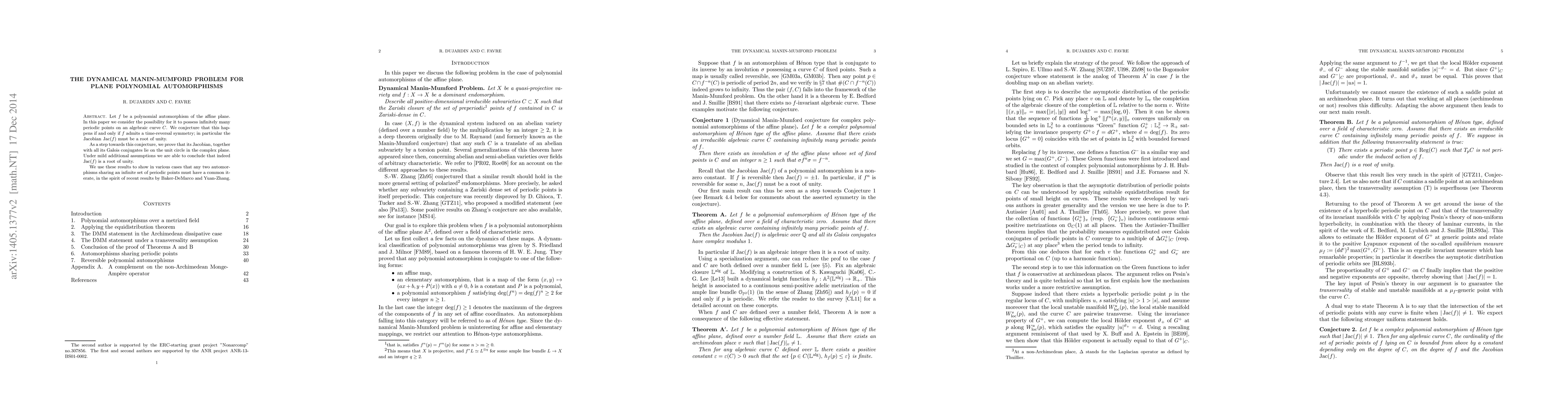 Researchers investigated polynomial automorphisms of the affine plane, finding that those with infinitely many periodic points on an algebraic curve have a time-reversal symmetry, leading to a root of unity in their Jacobian matrix.