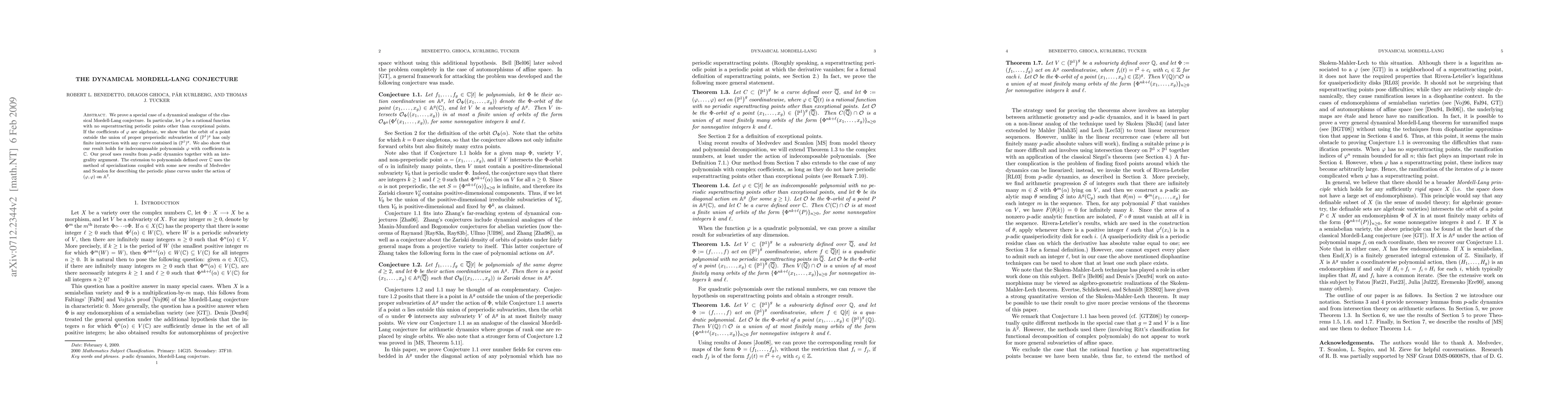 This paper proves a special case of the dynamical Mordell-Lang Conjecture, showing that the orbit of a point outside certain subvarieties under a rational function has finite intersection with any curve, using $p$-adic dynamics and integrality arguments. The result extends to indecomposable polynomials with complex coefficients.
