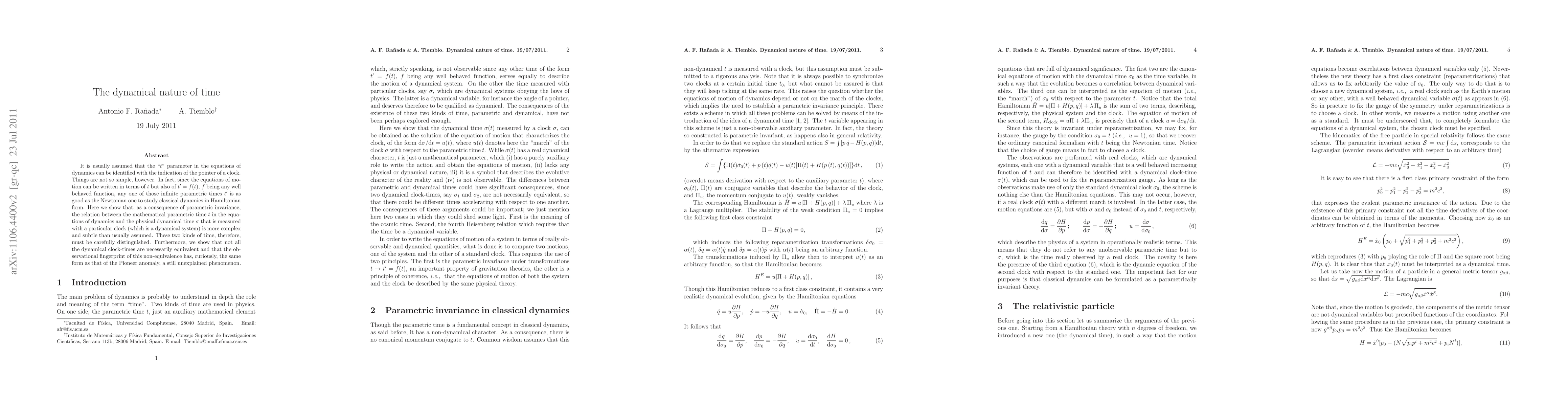 It is usually assumed that the "$t$" parameter in the equations of dynamics can be identified with the indication of the pointer of a clock. Things are not so easy, however. In fact, since the equations of motion can be written in terms of $t$ but also of $t'=f(t)$, $f$ being any well behaved function, each one of those infinite parametric times $t'$ is as good as the Newtonian one to study classical dynamics. Here we show that the relation between the mathematical parametric time $t$ in the equations of dynamics and the physical dynamical time $\sigma$ that is measured with clocks is more complex and subtle than usually assumed. These two times, therefore, must be carefully distinguished since their difference may have significant consequences. Furthermore, we show that not all the dynamical clock-times are necessarily equivalent and that the observational fingerprint of this non-equivalence has the same form as that of the Pioneer anomaly.