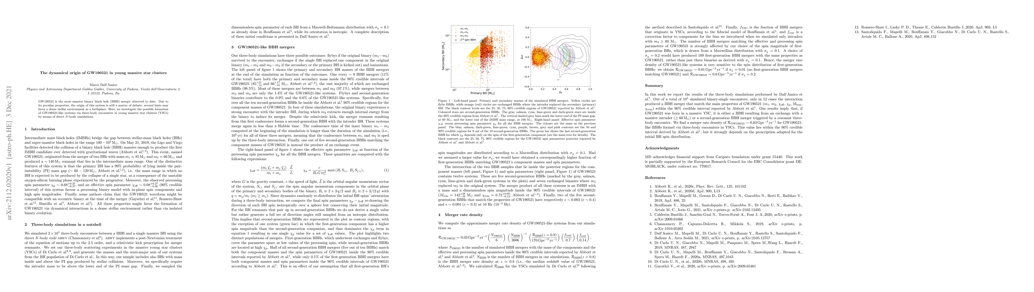 GW190521 is the most massive binary black hole (BBH) merger observed to date. Due to its peculiar properties, the origin of this system is still a matter of debate: several hints may favor a dense stellar environment as a birthplace. Here, we investigate the possible formation of GW190521-like systems via three-body encounters in young massive star clusters (YSCs) by means of direct N-body simulations.