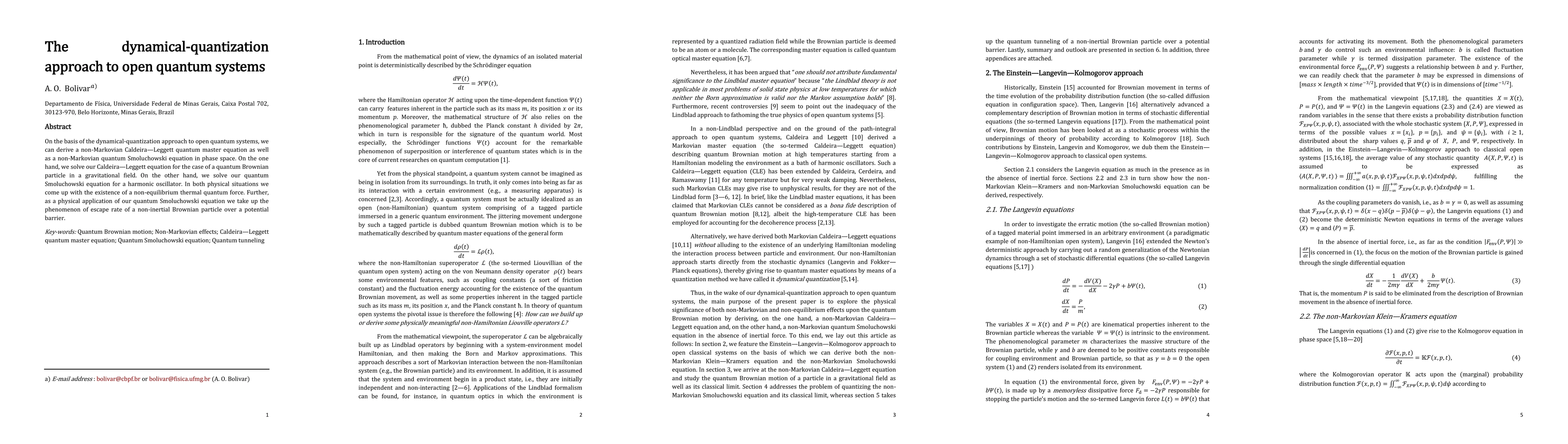 This paper develops a dynamical-quantization approach to open quantum systems, deriving non-Markovian master and Smoluchowski equations. It applies these equations to quantum Brownian motion and harmonic oscillators, revealing non-equilibrium thermal quantum forces and exploring escape rates in non-inertial Brownian motion.
