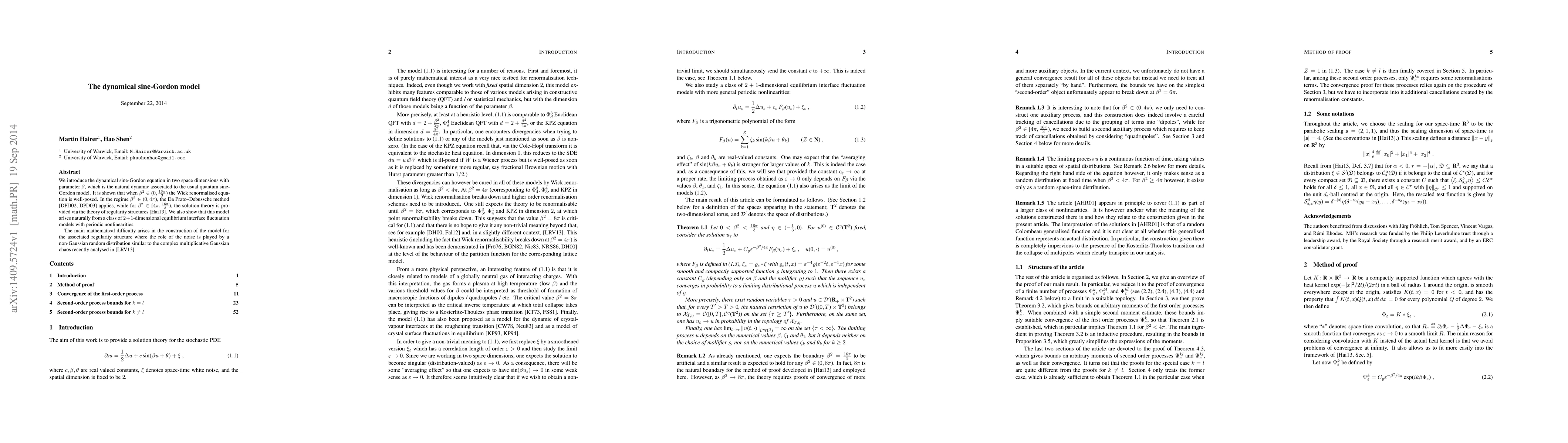 Researchers introduce a dynamical sine-Gordon equation in 2D with parameter β, exploring its well-posedness and solution theory under different conditions.