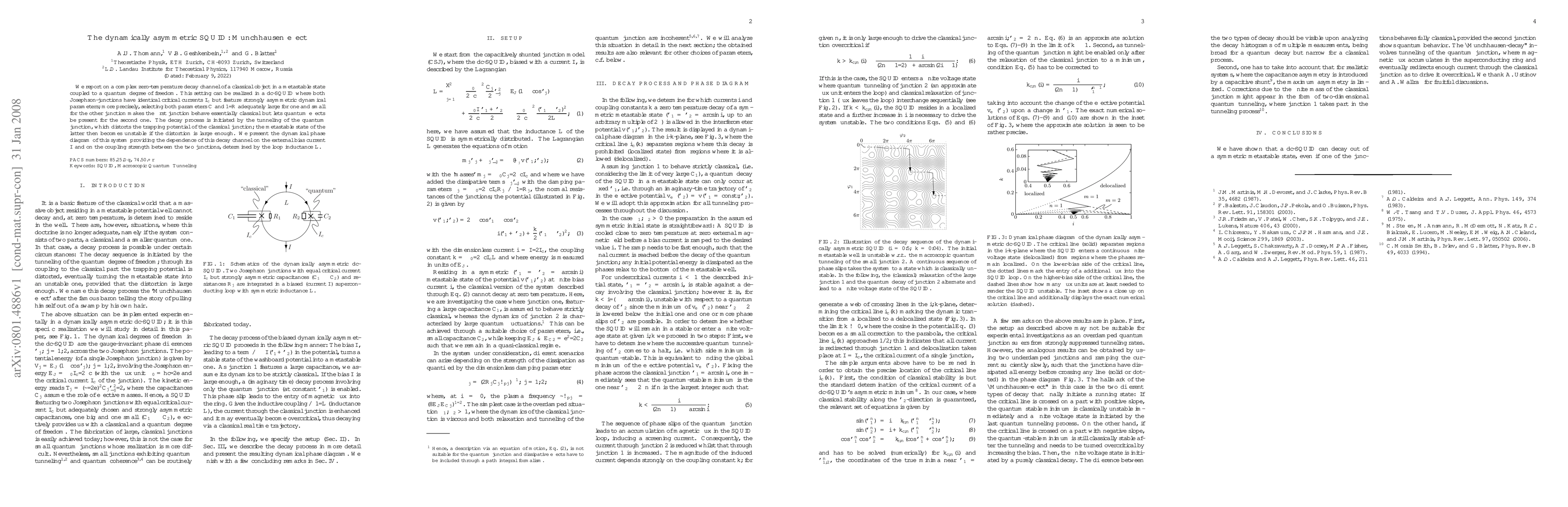 We report on a complex zero-temperature decay channel of a classical object in a metastable state coupled to a quantum degree of freedom. This setting can be realized in a dc-SQUID where both Josephson-junctions have identical critical currents I_c but feature strongly asymmetric dynamical parameters; more precisely, selecting both parameters C and 1/R adequately large for one and small for the other junction makes the first junction behave essentially classical but lets quantum effects be present for the second one. The decay process is initiated by the tunneling of the quantum junction, which distorts the trapping potential of the classical junction; the metastable state of the latter then becomes unstable if the distortion is large enough. We present the dynamical phase diagram of this system providing the dependence of this decay channel on the external bias current I and on the coupling strength between the two junctions, determined by the loop inductance L.