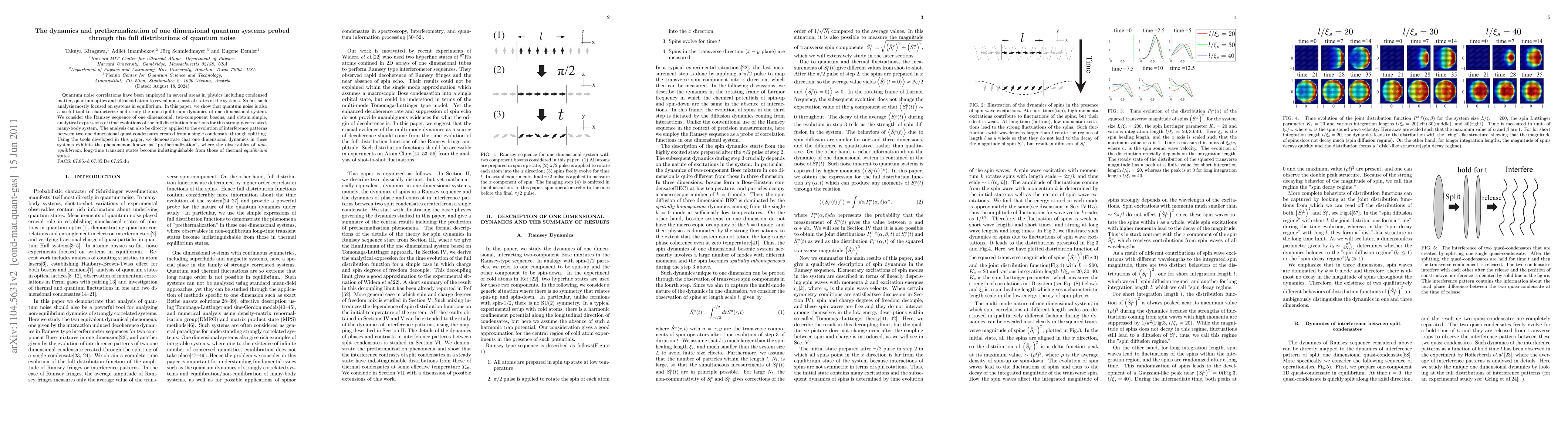 Quantum noise correlations have been employed in several areas in physics including condensed matter, quantum optics and ultracold atom to reveal non-classical states of the systems. So far, such analysis mostly focused on systems in equilibrium. In this paper, we show that quantum noise is also a useful tool to characterize and study the non-equilibrium dynamics of one dimensional system. We consider the Ramsey sequence of one dimensional, two-component bosons, and obtain simple, analytical expressions of time evolutions of the full distribution functions for this strongly-correlated, many-body system. The analysis can also be directly applied to the evolution of interference patterns between two one dimensional quasi-condensates created from a single condensate through splitting. Using the tools developed in this paper, we demonstrate that one dimensional dynamics in these systems exhibits the phenomenon known as "prethermalization", where the observables of {\it non-equilibrium}, long-time transient states become indistinguishable from those of thermal {\it equilibrium} states.