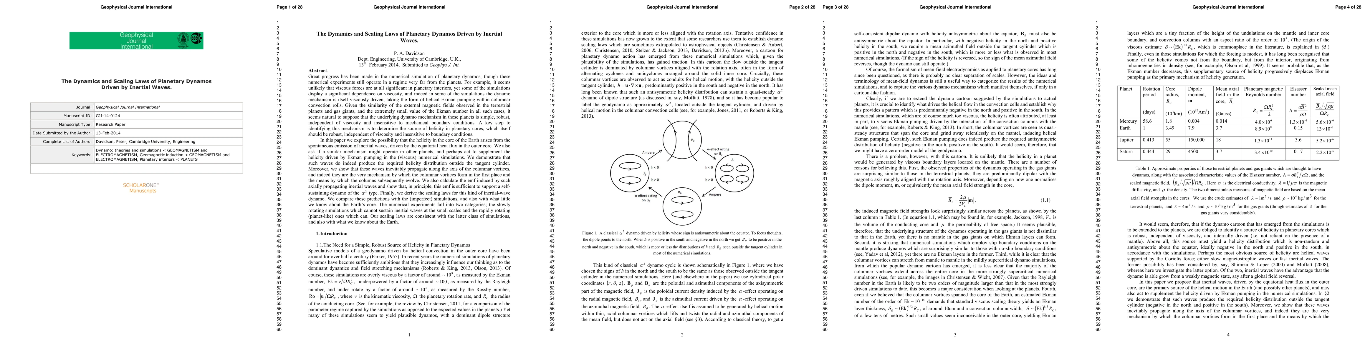 The numerical simulations of planetary dynamos still operate in a regime very far from the planets. For example, it seems unlikely that viscous forces are at all significant in planetary interiors, yet some of the simulations display a significant dependence on viscosity, and indeed in some of the simulations the dynamo mechanism is itself viscously driven, taking the form of helical Ekman pumping within columnar convection rolls. Given the similarity of the external magnetic fields observed in the terrestrial planets and gas giants, and the extremely small value of the Ekman number in all such cases, it seems natural to suppose that the underlying dynamo mechanism in these planets is independent of viscosity and insensitive to mechanical boundary conditions. A key step to identifying this mechanism is to determine the source of helicity in planetary cores. In this paper we explore the possibility that the helicity in the core of the Earth arises from the spontaneous emission of inertial waves, driven by the equatorial heat flux in the outer core.