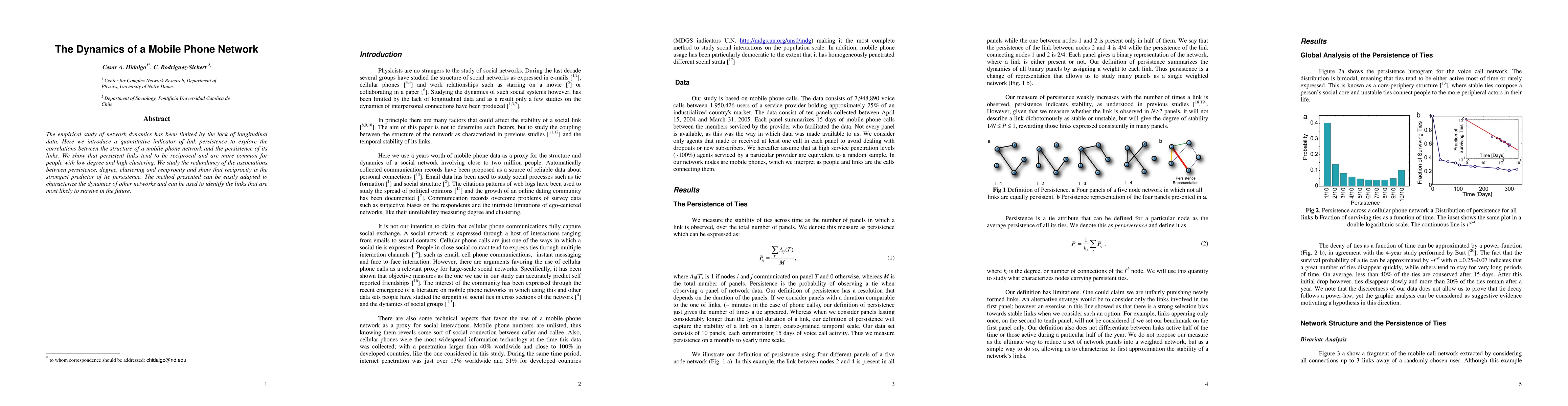 The paper presents a novel quantitative indicator of link persistence and demonstrates its application to a mobile phone network, revealing correlations between link persistence, degree, clustering, and reciprocity.