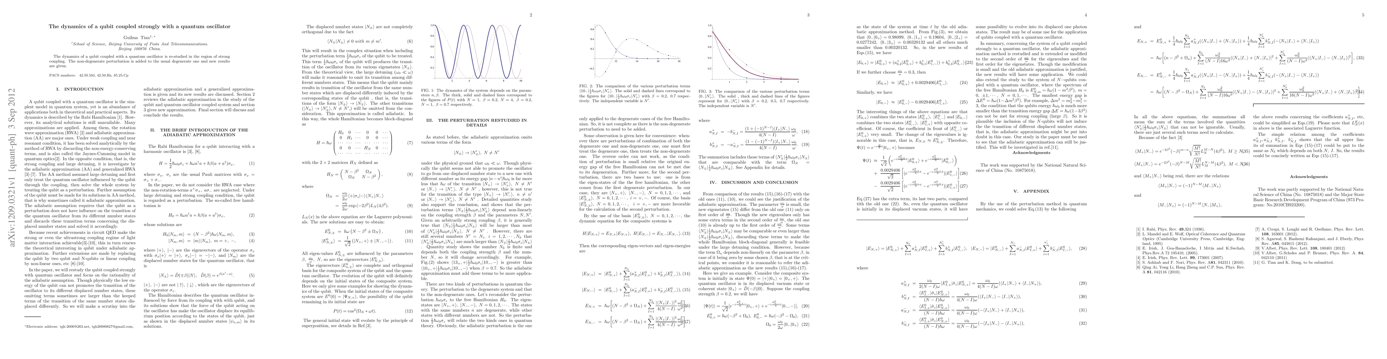 This paper explores the dynamics of a qubit strongly coupled with a quantum oscillator, introducing non-degenerate perturbation to the usual degenerate one, and presents new results in the strong coupling regime.