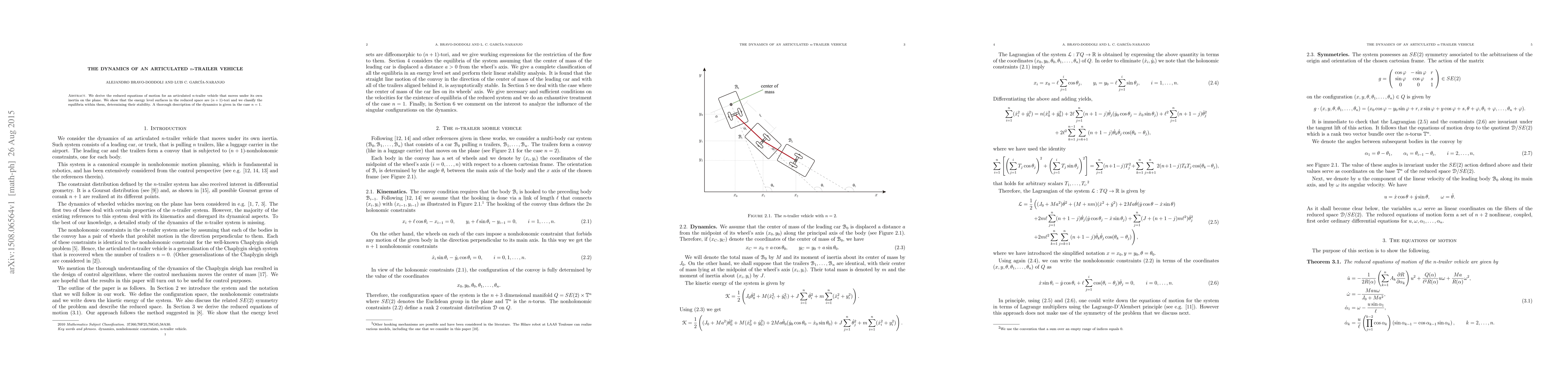 This paper derives the reduced equations of motion for an articulated $n$-trailer vehicle and demonstrates that the energy level surfaces are $(n+1)$-tori. It classifies the equilibria and determines their stability, providing a detailed dynamic analysis for $n=1$.