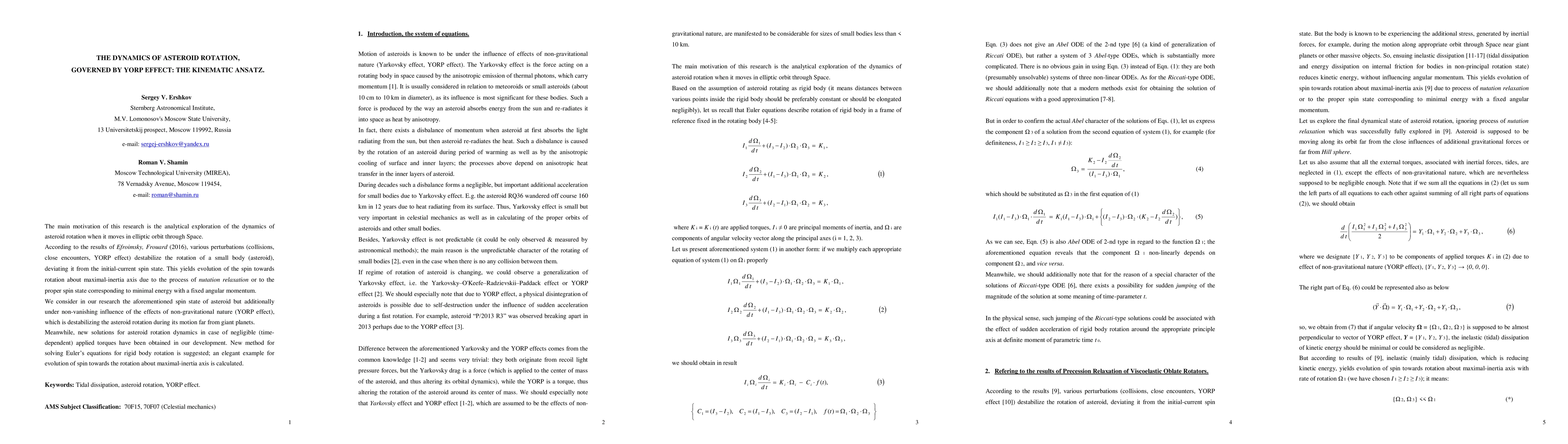 This research paper explores how asteroids rotate when moving in elliptical orbits through space, with a focus on the YORP effect, which destabilizes rotation. New solutions for asteroid rotation dynamics have been developed, providing insight into the spin state of small bodies.