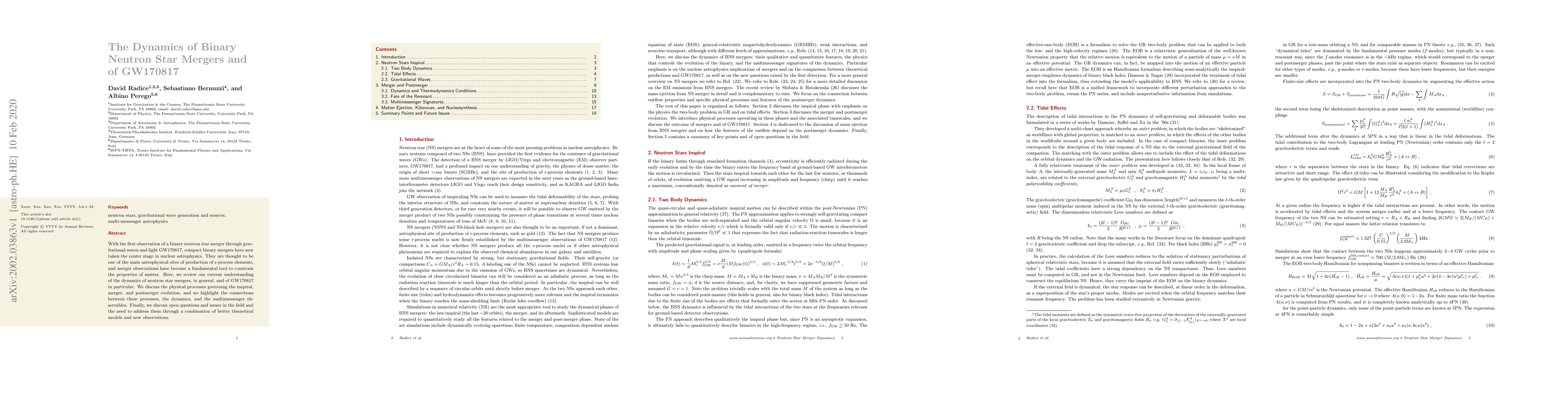 This paper reviews the dynamics of binary neutron star mergers, focusing on the landmark event GW170817, which combines gravitational wave and electromagnetic observations. It discusses the physical processes involved in the merger and their implications for r-process element production, emphasizing the need for improved theoretical models and new observational data to address open questions.