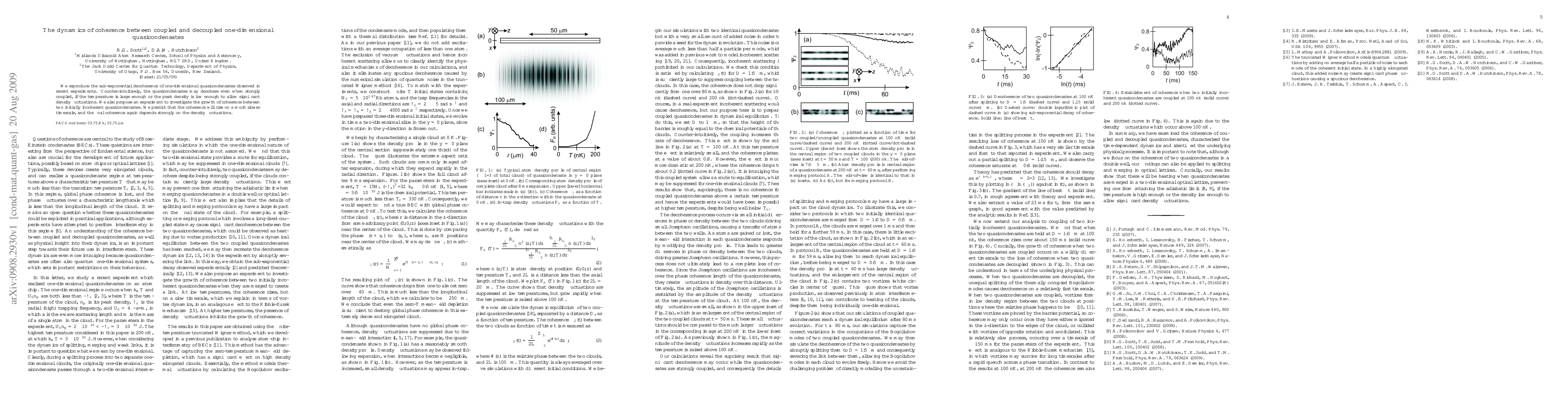 Researchers reproduce sub-exponential decoherence in one-dimensional quasicondensates, finding that strong coupling can lead to decoherence at high temperatures or low density peaks. They propose an experiment to study the growth of coherence between initially incoherent quasicondensates.