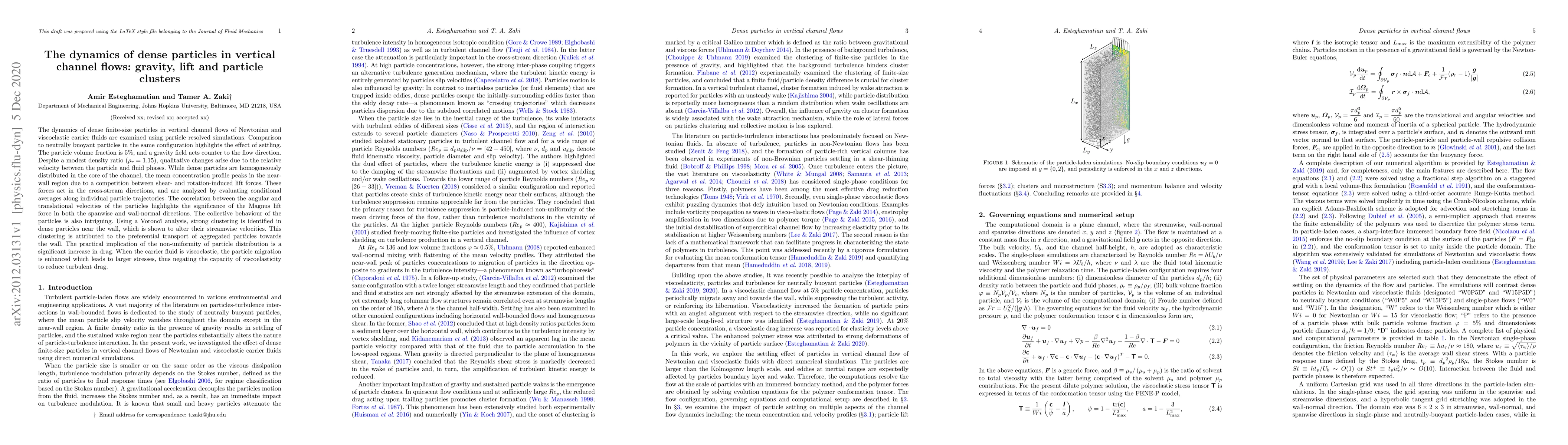 Research examines how dense particles interact with fluids in vertical channels, finding that even low-density particles can exhibit significant settling behavior due to lift forces, leading to non-uniform particle distribution and increased drag.