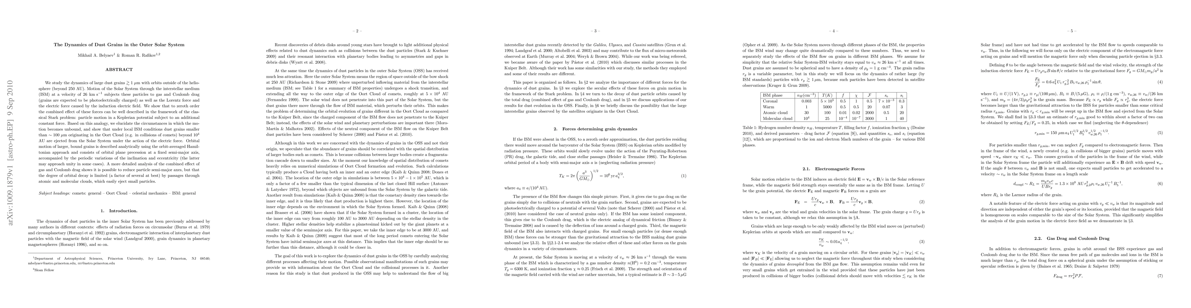 This paper investigates the dynamics of large dust grains beyond 250 AU, analyzing forces like gas and Coulomb drag, Lorentz force, and electric induction. It concludes that small grains from the Oort Cloud can be ejected by electric forces, while larger grains experience orbital precession and limited decay due to drag, often being ejected by interstellar clouds.