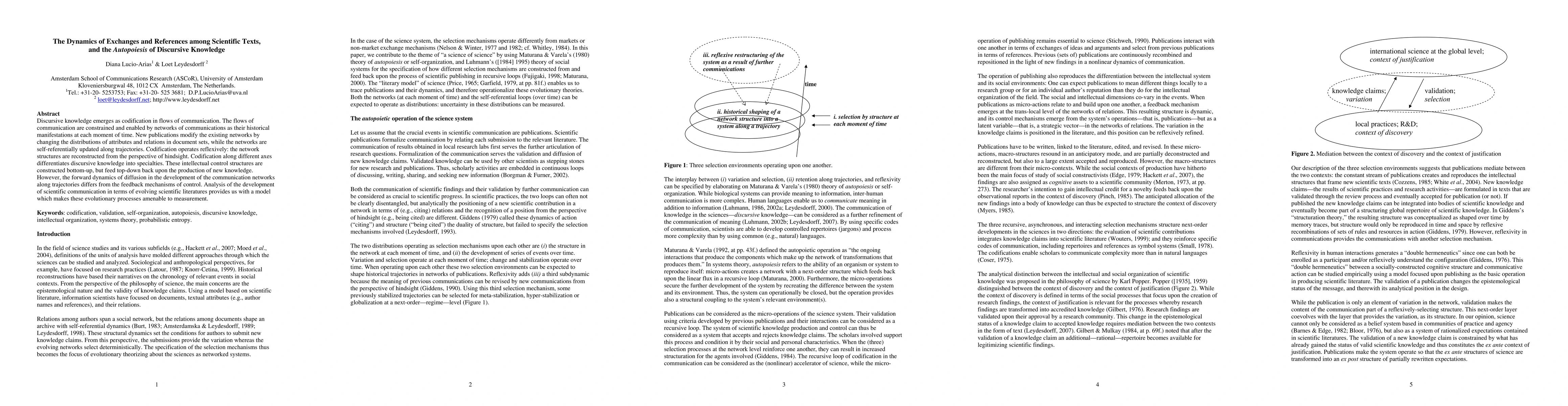 Discursive knowledge emerges as codification in flows of communication. The flows of communication are constrained and enabled by networks of communications as their historical manifestations at each moment of time. New publications modify the existing networks by changing the distributions of attributes and relations in document sets, while the networks are self-referentially updated along trajectories. Codification operates reflexively: the network structures are reconstructed from the perspective of hindsight. Codification along different axes differentiates discursive knowledge into specialties. These intellectual control structures are constructed bottom-up, but feed top-down back upon the production of new knowledge. However, the forward dynamics of diffusion in the development of the communication networks along trajectories differs from the feedback mechanisms of control. Analysis of the development of scientific communication in terms of evolving scientific literatures provides us with a model which makes these evolutionary processes amenable to measurement.
