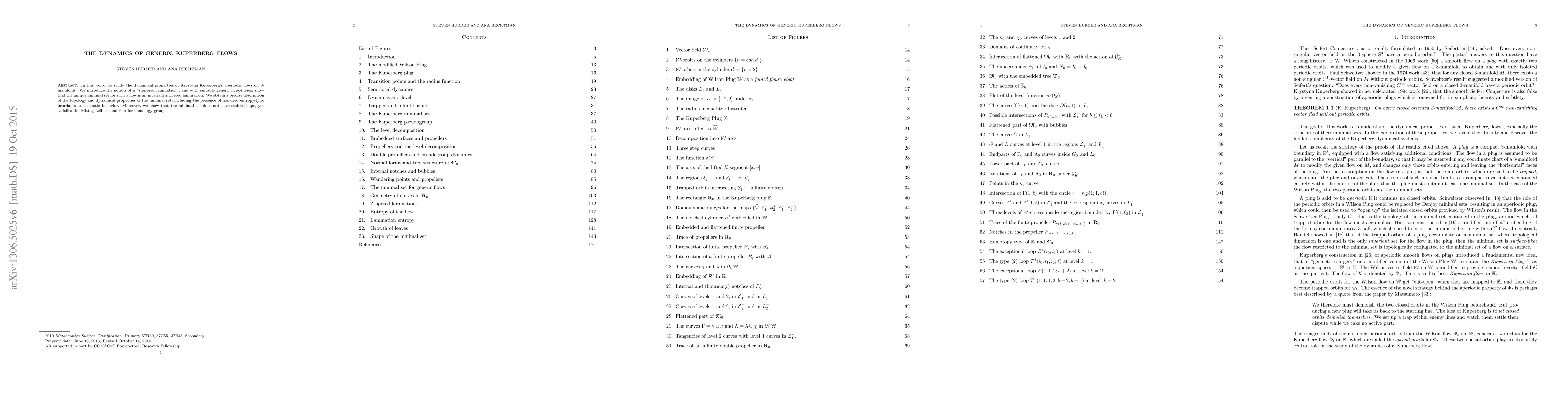 In this work, we study the dynamical properties of Krystyna Kuperberg's aperiodic flows on $3$-manifolds. We introduce the notion of a ``zippered lamination'', and with suitable generic hypotheses, show that the unique minimal set for such a flow is an invariant zippered lamination. We obtain a precise description of the topology and dynamical properties of the minimal set, including the presence of non-zero entropy-type invariants and chaotic behavior. Moreover, we show that the minimal set does not have stable shape, yet satisfies the Mittag-Leffler condition for homology groups.