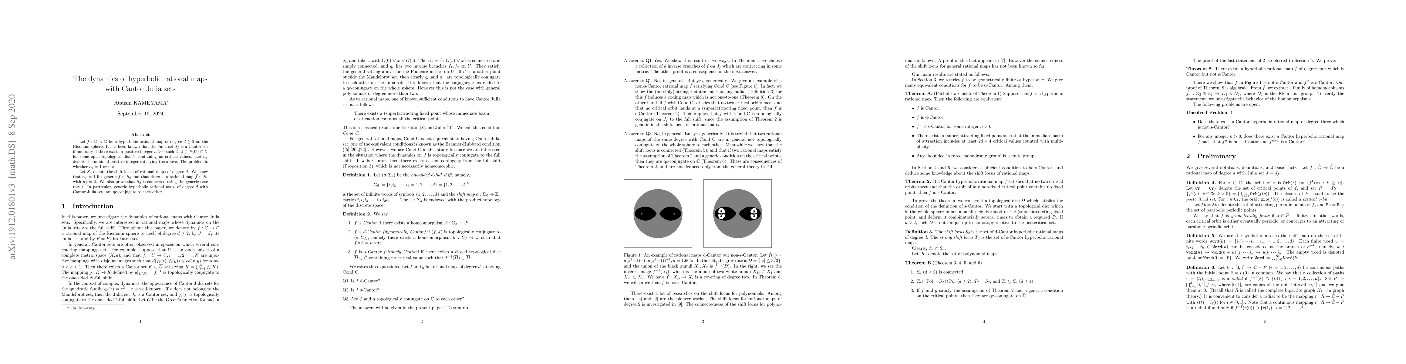 The paper establishes conditions for Cantor Julia sets in hyperbolic rational maps, proves connectivity of the shift locus S_d, and demonstrates qc-conjugacy among generic hyperbolic rational maps with Cantor Julia sets.