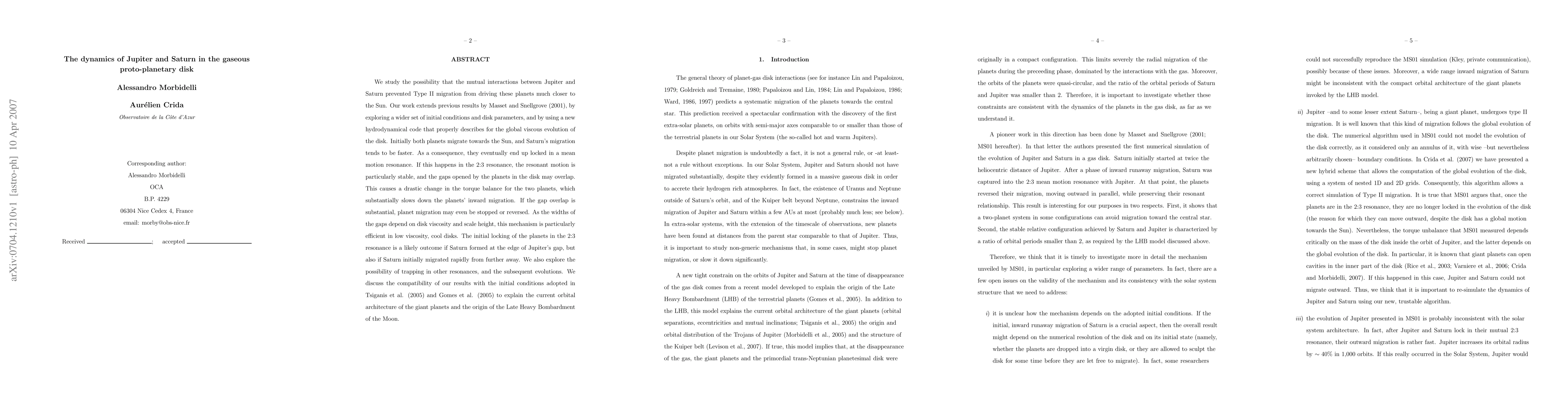 We study the possibility that the mutual interactions between Jupiter and Saturn prevented Type II migration from driving these planets much closer to the Sun. Our work extends previous results by Masset and Snellgrove (2001), by exploring a wider set of initial conditions and disk parameters, and by using a new hydrodynamical code that properly describes for the global viscous evolution of the disk. Initially both planets migrate towards the Sun, and Saturn's migration tends to be faster. As a consequence, they eventually end up locked in a mean motion resonance. If this happens in the 2:3 resonance, the resonant motion is particularly stable, and the gaps opened by the planets in the disk may overlap. This causes a drastic change in the torque balance for the two planets, which substantially slows down the planets' inward migration. If the gap overlap is substantial, planet migration may even be stopped or reversed. As the widths of the gaps depend on disk viscosity and scale height, this mechanism is particularly efficient in low viscosity, cool disks. We discuss the compatibility of our results with the initial conditions adopted in Tsiganis et al. (2005) and Gomes et al. (2005) to explain the current orbital architecture of the giant planets and the origin of the Late Heavy Bombardment of the Moon.