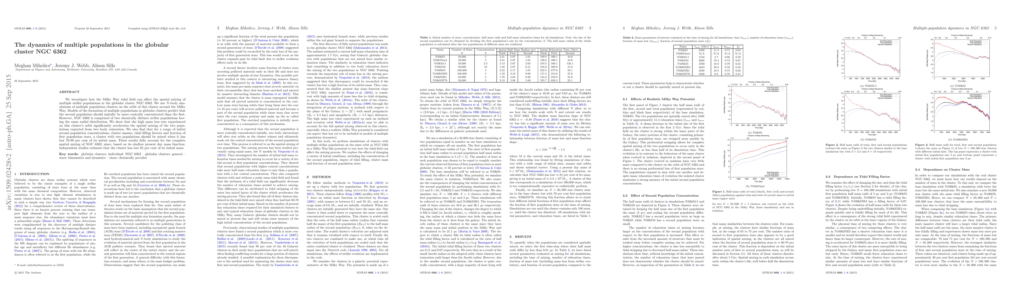 This paper investigates the spatial mixing of two distinct stellar populations in the globular cluster NGC 6362 using $N$-body simulations. It finds that the cluster's tidal interactions with the Milky Way accelerate the mixing, explaining the observed uniform distribution of populations despite initial predictions.