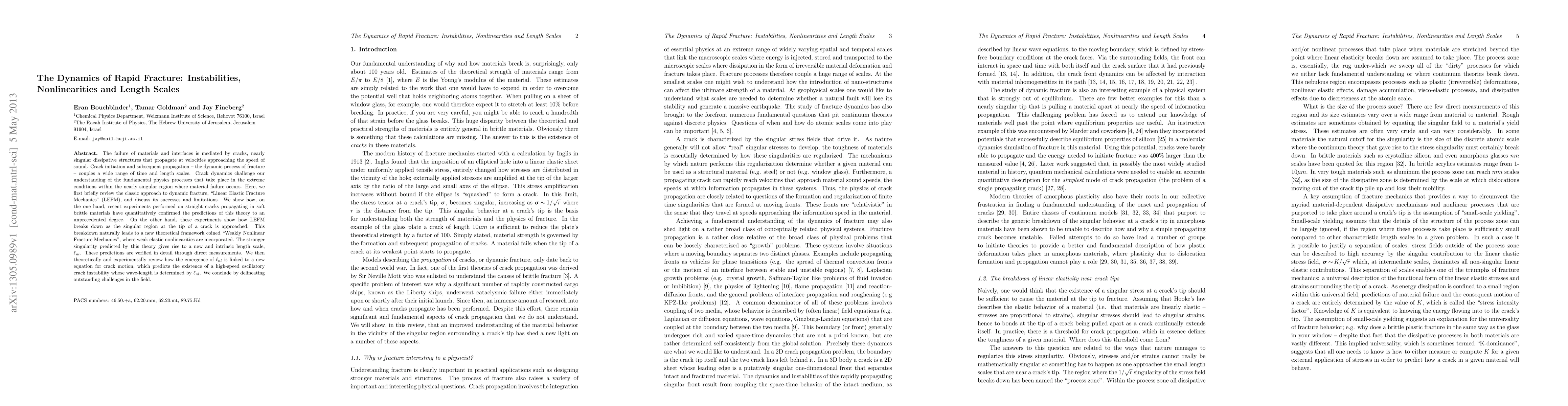 The failure of materials and interfaces is mediated by cracks, nearly singular dissipative structures that propagate at velocities approaching the speed of sound. Crack initiation and subsequent propagation -- the dynamic process of fracture -- couples a wide range of time and length scales. Crack dynamics challenge our understanding of the fundamental physics processes that take place in the extreme conditions within the nearly singular region where material failure occurs. Here, we first briefly review the classic approach to dynamic fracture, "Linear Elastic Fracture Mechanics" (LEFM), and discuss its successes and limitations. We show how, on the one hand, recent experiments performed on straight cracks propagating in soft brittle materials have quantitatively confirmed the predictions of this theory to an unprecedented degree. On the other hand, these experiments show how LEFM breaks down as the singular region at the tip of a crack is approached. This breakdown naturally leads to a new theoretical framework coined "Weakly Nonlinear Fracture Mechanics", where weak elastic nonlinearities are incorporated. The stronger singularity predicted by this theory gives rise to a new and intrinsic length scale, $\ell_{nl}$. These predictions are verified in detail through direct measurements. We then theoretically and experimentally review how the emergence of $\ell_{nl}$ is linked to a new equation for crack motion, which predicts the existence of a high-speed oscillatory crack instability whose wave-length is determined by $\ell_{nl}$. We conclude by delineating outstanding challenges in the field.